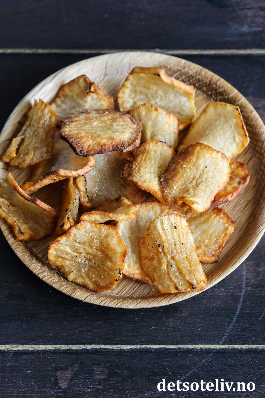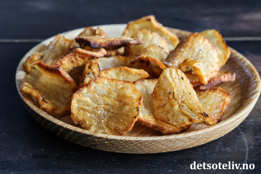 ♥ Jordskokkchips bør serveres nylagde, mens de er sprø.