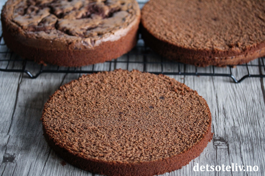 ♥ Det kan også være lurt å lage kakebunnene kvelden i forveien, pakke dem inn i plast og la dem stå i kjøleskapet over natten. Kakebunnene er nemlig mye lettere å dele i kakebunner når de er skikkelig kalde.