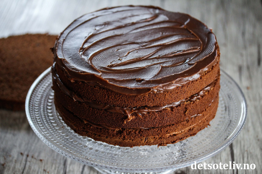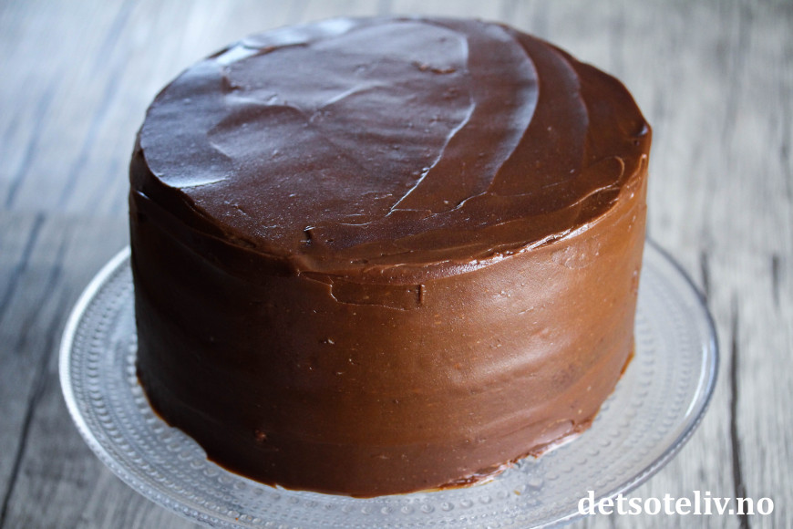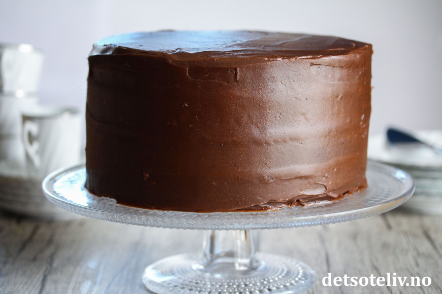 Smør resten av sjokoladekremen i et tykt lag rundt hele kaken.