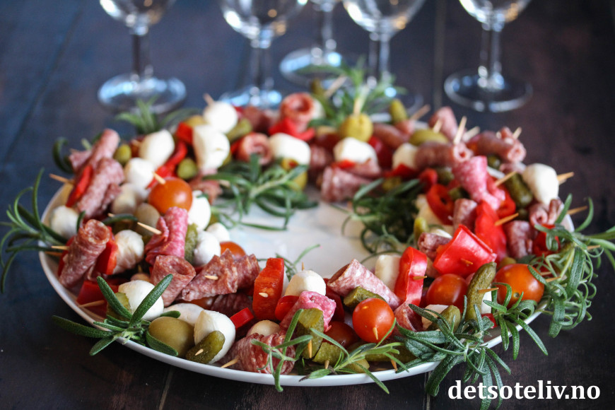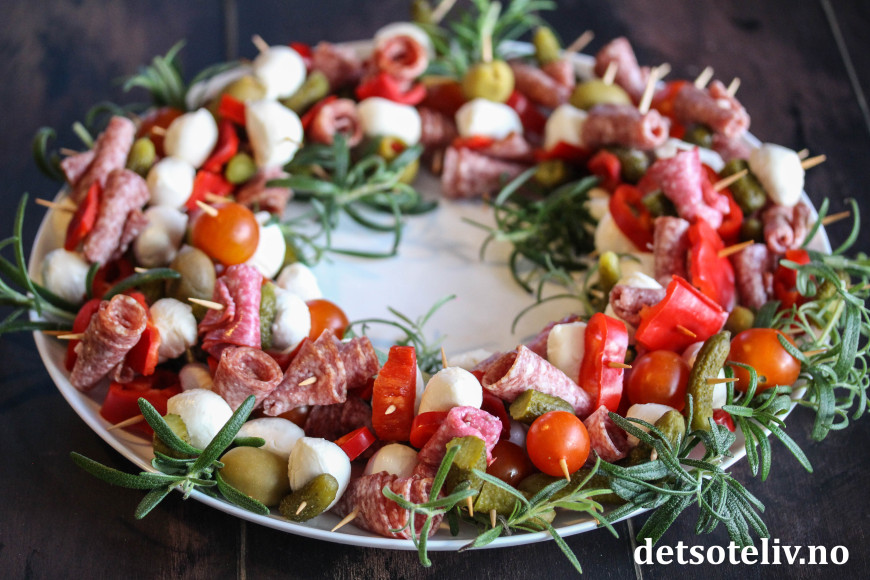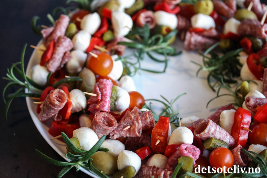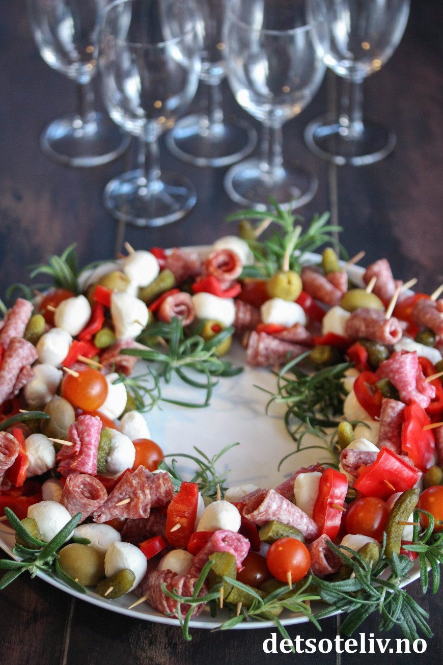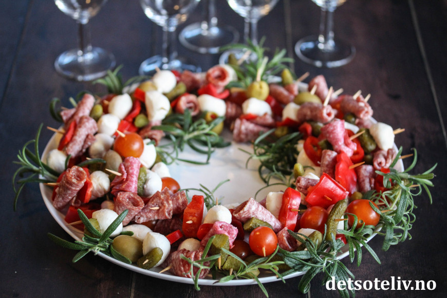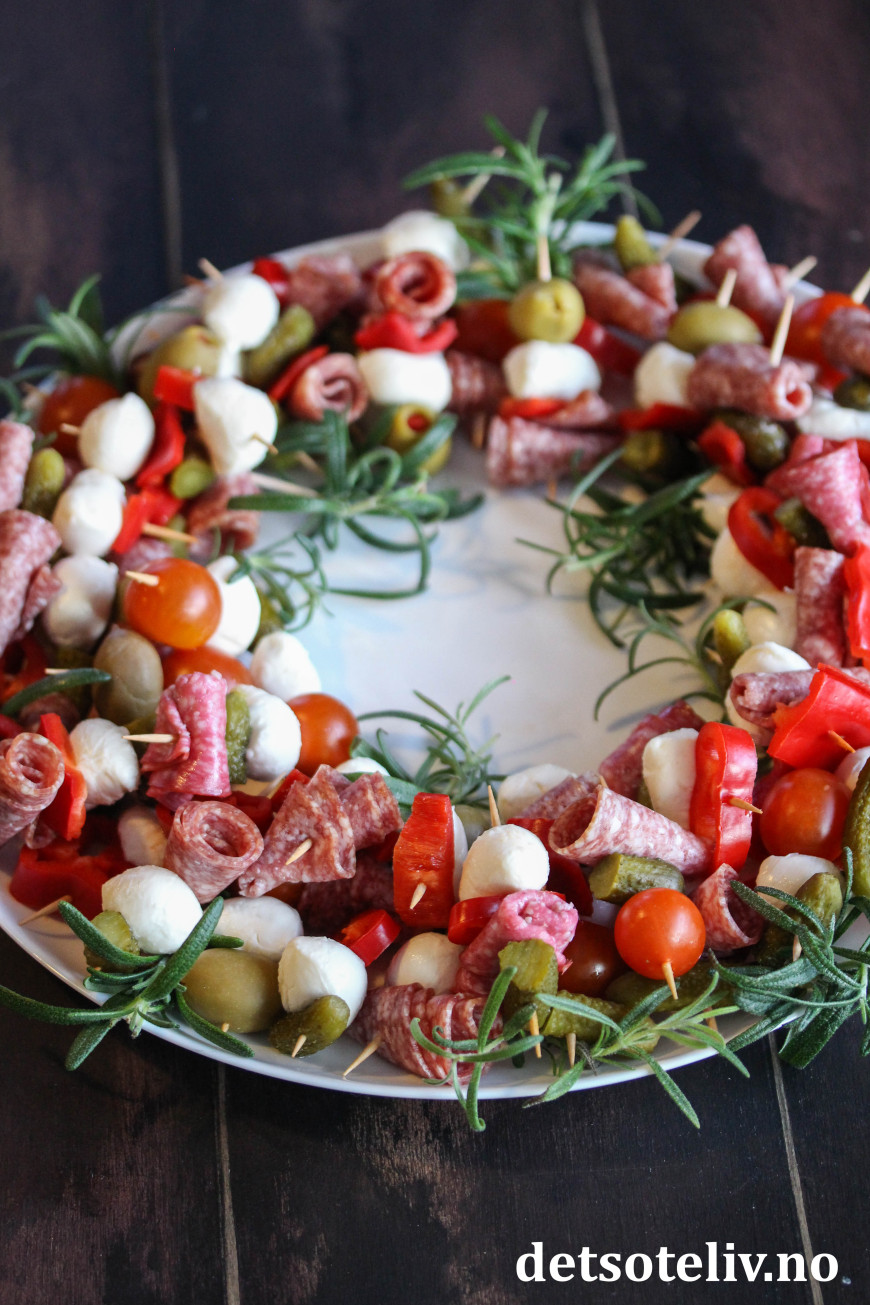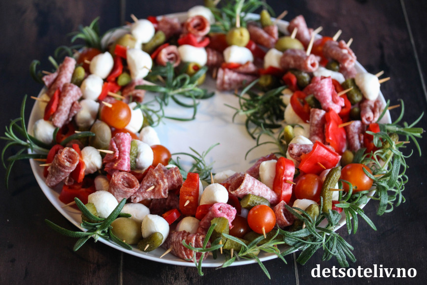 Denne julekransen er lekker å sette frem til gjestene som fingermat sammen med velkomstdrinken!
