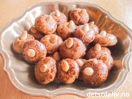 "Julenøtter" er holdbare småkaker. De skal bli harde og ligner sånn sett på "Peppernøtter" (se oppskrift på detsoteliv.no). Oppbevares i tettsluttet kakeboks.