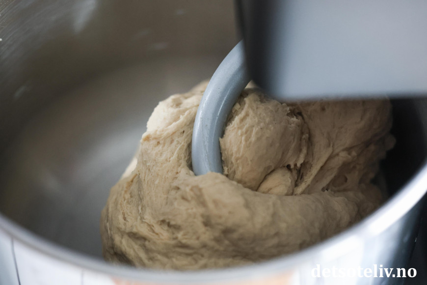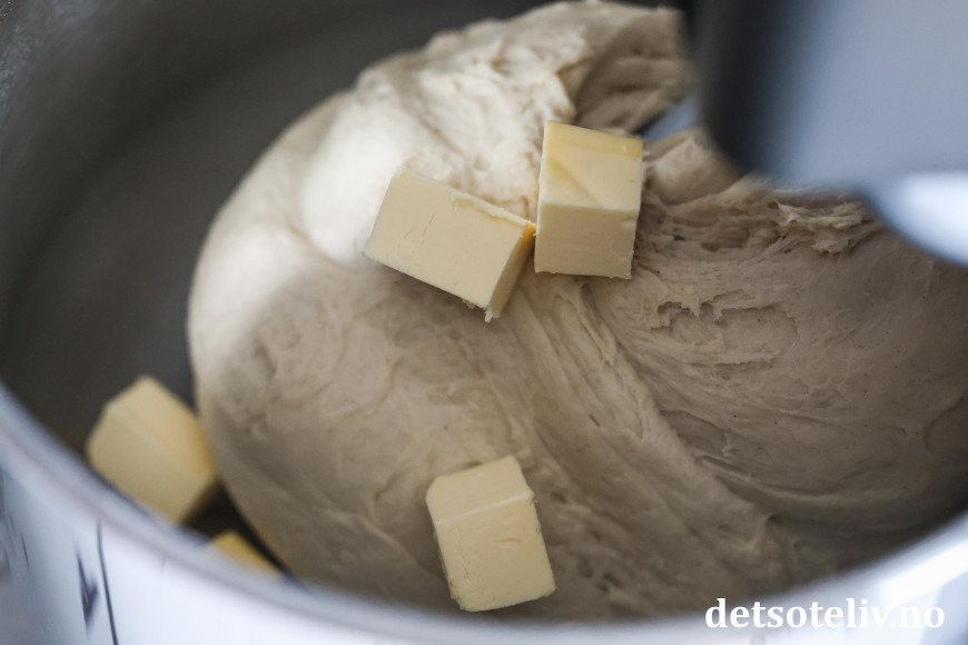 ♥ Jeg anbefaler deg å bruke en god kjøkkenmaskin slik som Wilfa Probaker når du lager denne deigen. Da går det lett å kna deigen, selv om det myke smøret skal eltes inn til slutt. Den ferdigeltede deigen skal ikke være klissete.