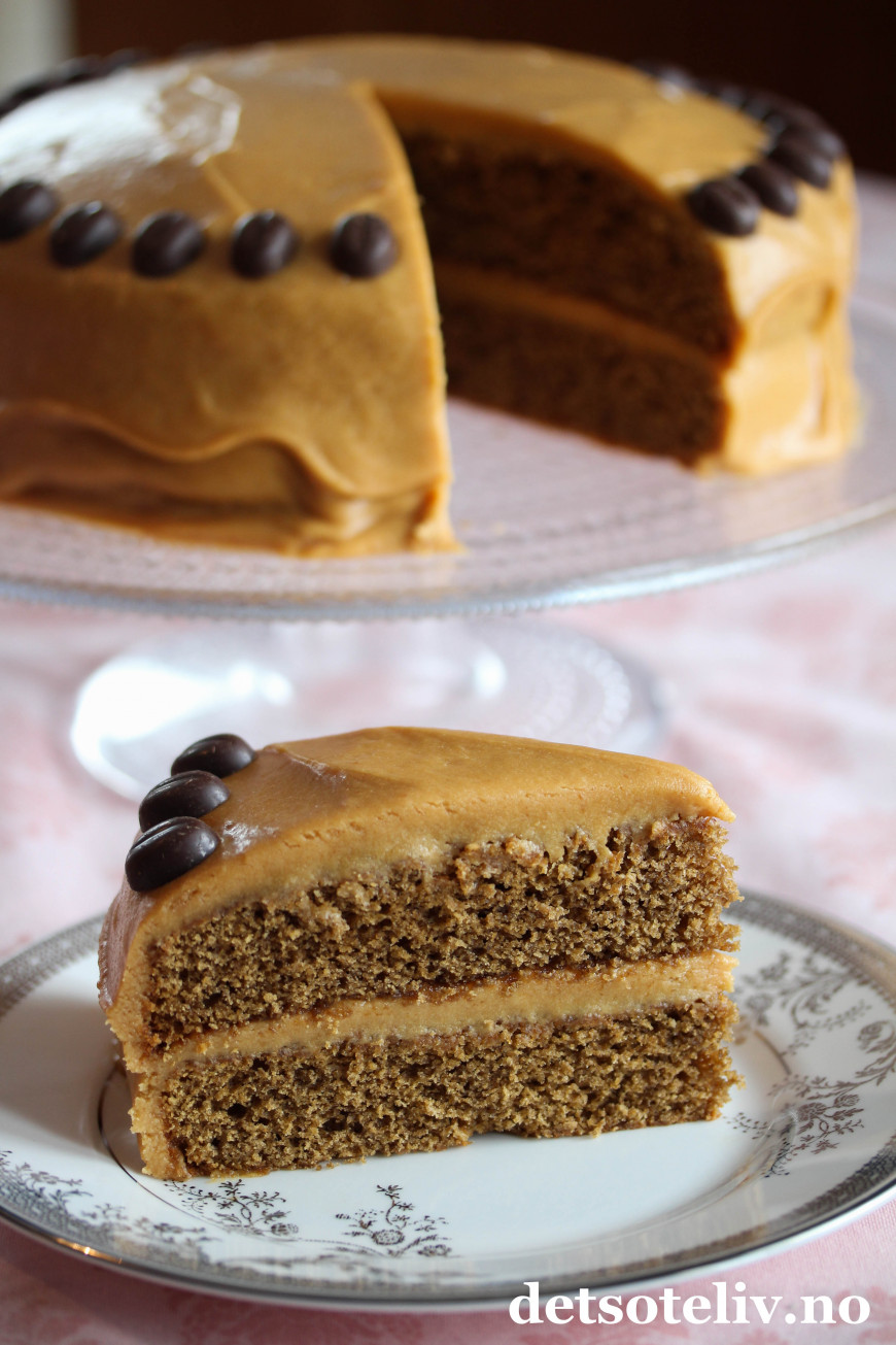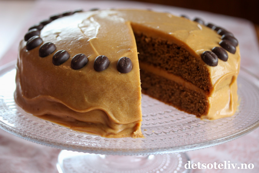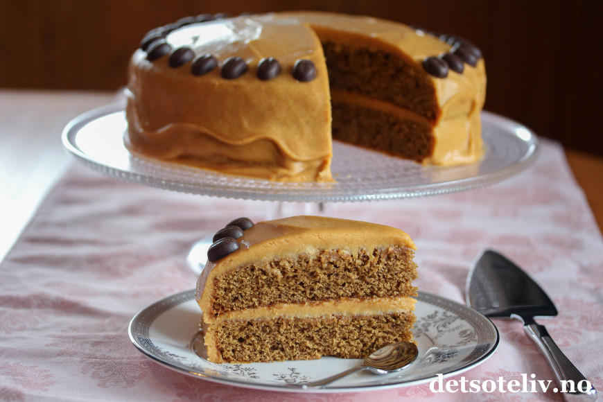 ♥ Merk at karamellkremen vil være nokså tynn i konsistensen når den er varm, men den blir tykkere ved avkjøling. Vent til den er helt kald og tykk før du fyller kaken. Bruk så en smørekniv som dyppes ofte i en kopp med kokende varmt vann når kremen skal bres utover kaken.
