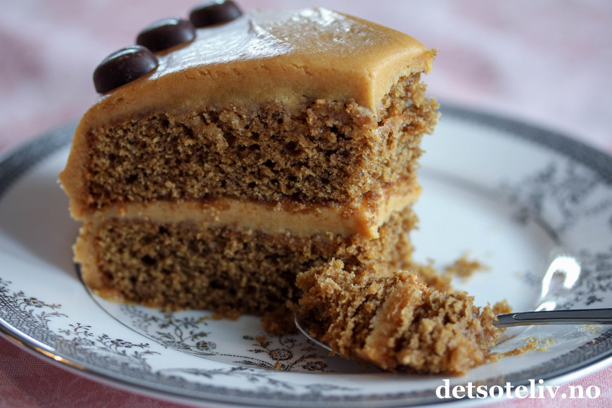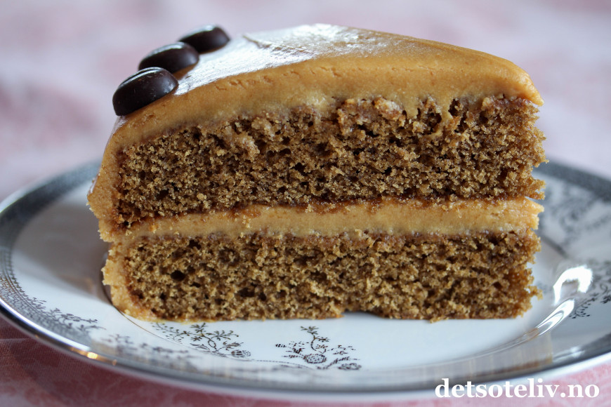 Pisk mykt smør og sukker til smørkrem. Tilsett eggene, ett om gangen, og pisk godt mellom hvert egg. Sikt mel og bakepulver sammen. Løs opp kaffepulveret i kokende vann. Avkjøl litt. Bland det tørre og den avkjølte kaffen vekselsvis i smørkremen og rør til du får en glatt og klumpfri deig.