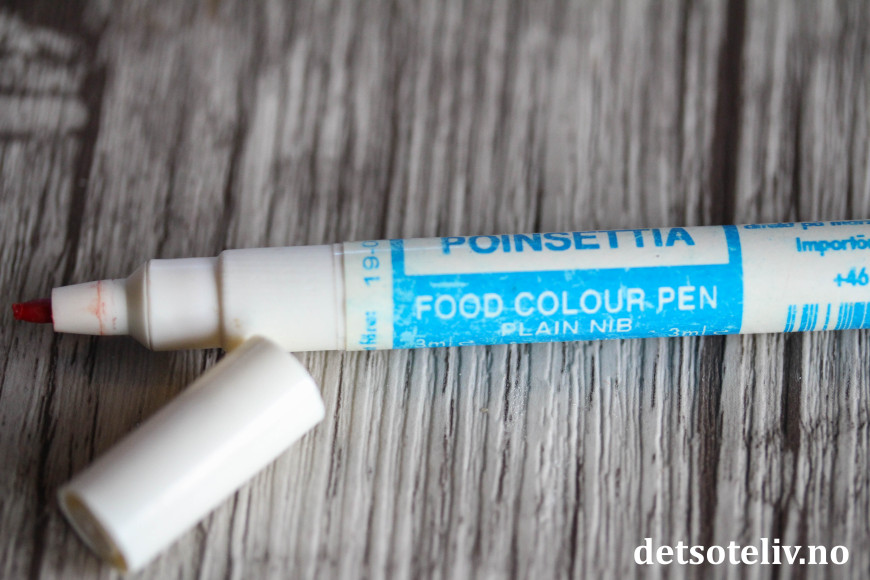 ♥ Spiselig fargepenn fås kjøpt i butikker som selger kakepynteutstyr.
