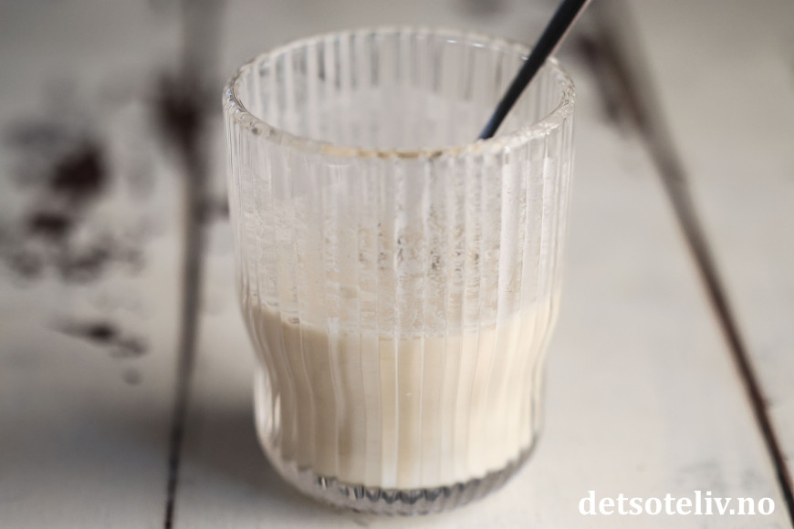 Løs opp hvetemelet i 1 dl kaldt vann.