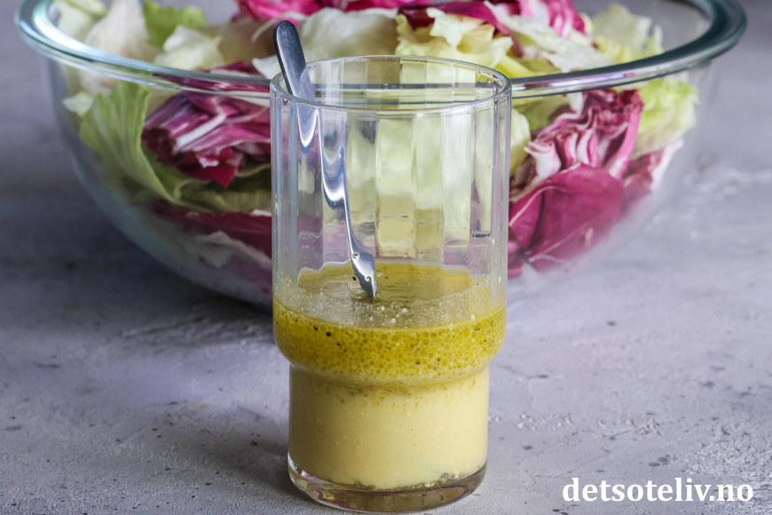 Salat med sennepsvinaigrette: