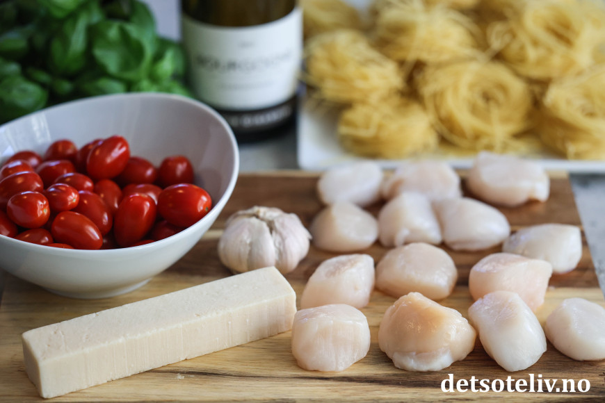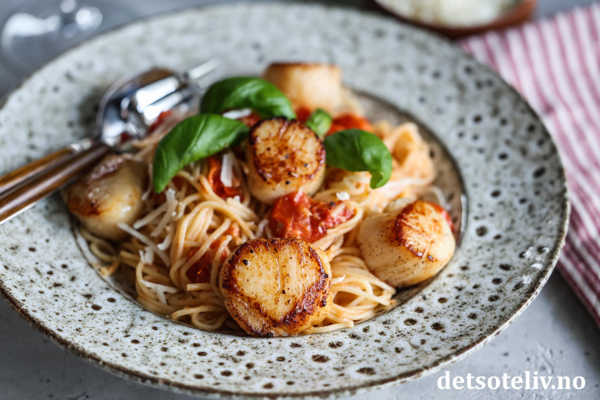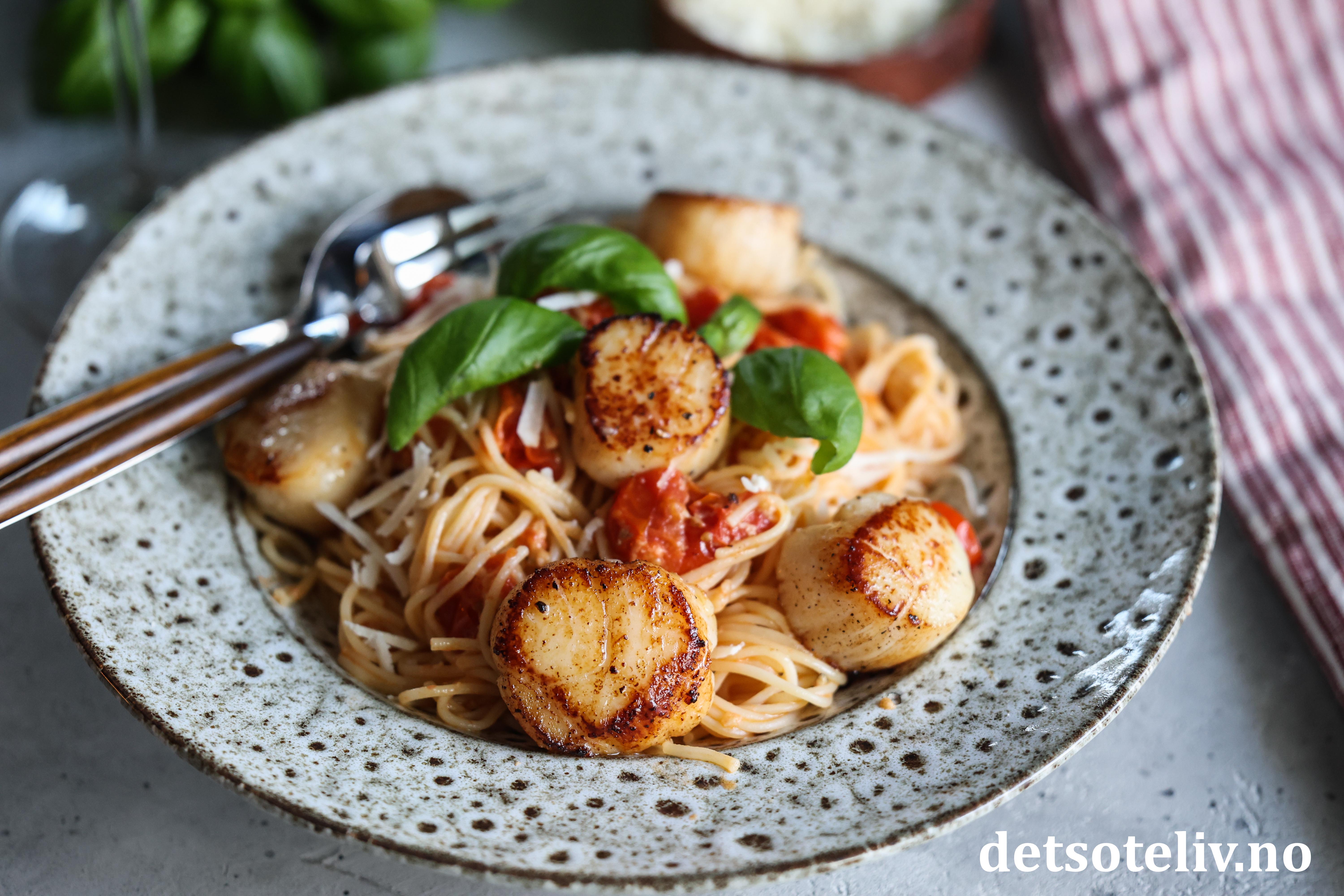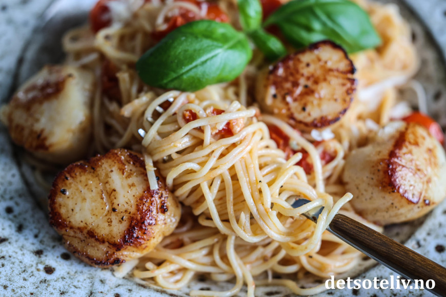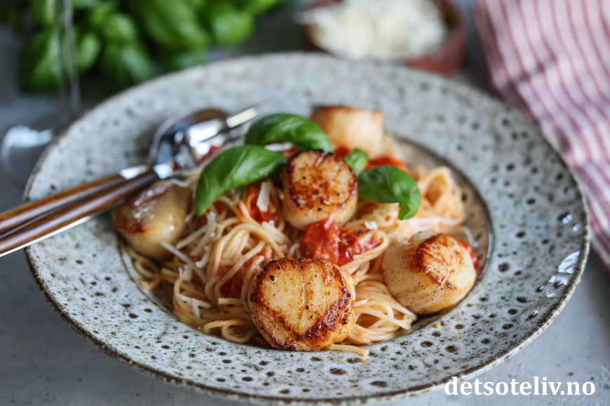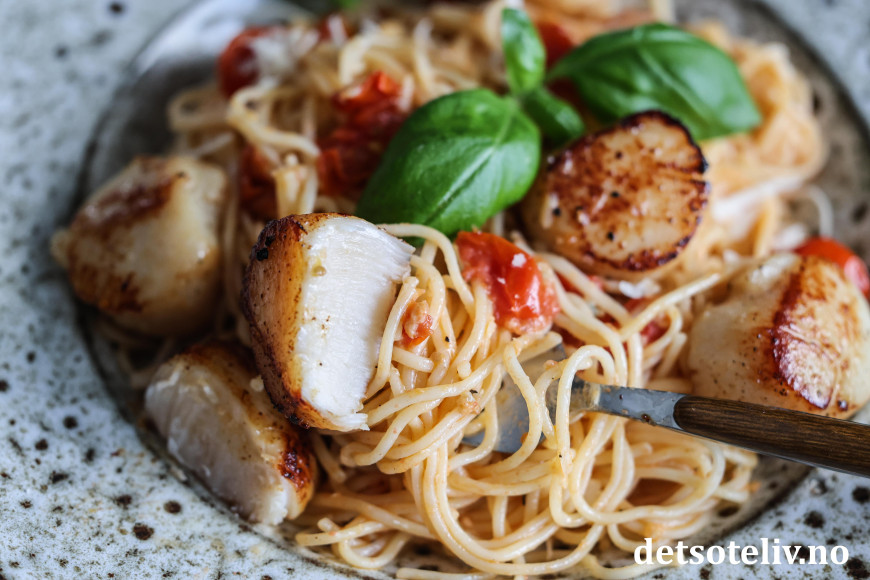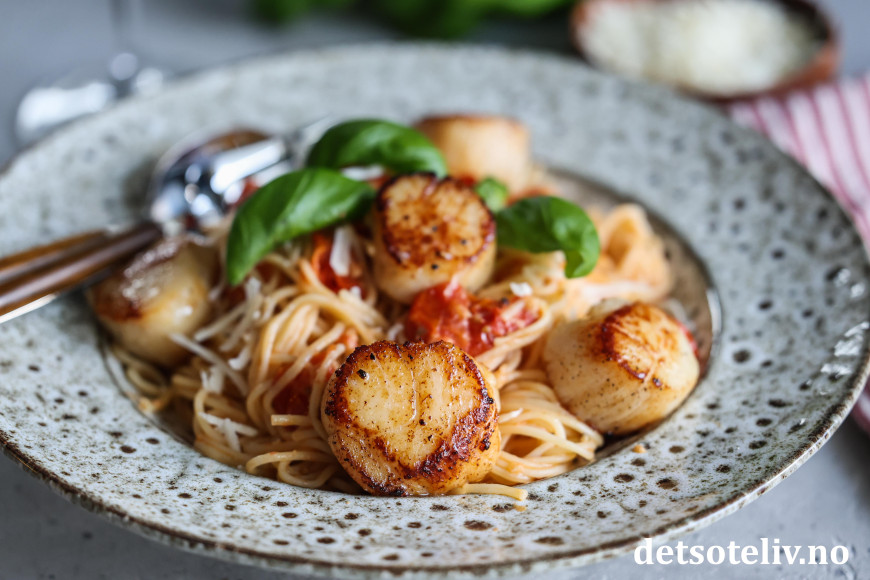 De rene smakene på pastasausen gjør at kamskjellene virkelig kommer til sin rett! 😊