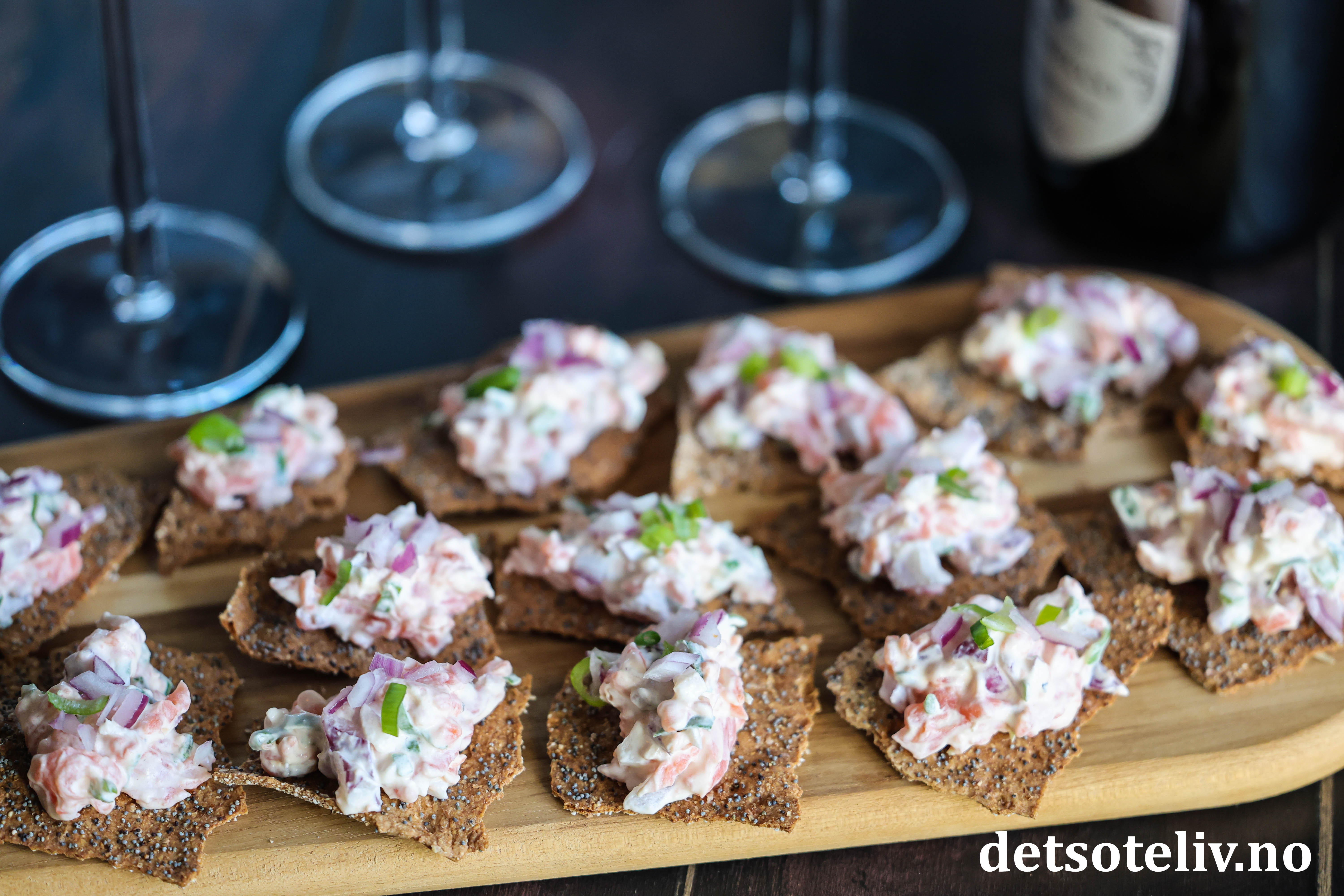 Disse kanapéene kan gjerne serveres sammen med et glass iskald hvitvin eller perlende eplecider!