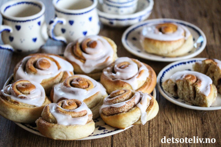 Stek bollene midt i ovnen ved 220 °C i ca 10 minutter. Avkjøl bollene helt før du pynter dem med litt tykk melisglasur.