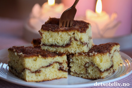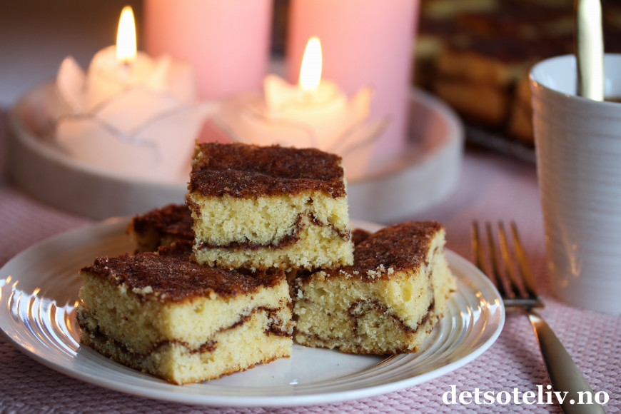 Saftig langpannekake som smaker herlig sammen med en kopp varm kakao.