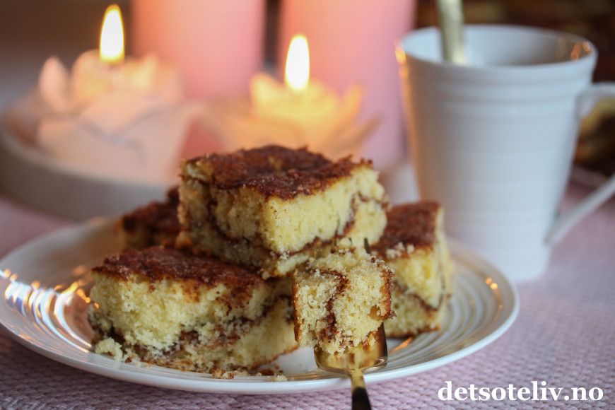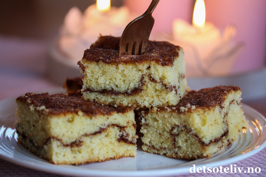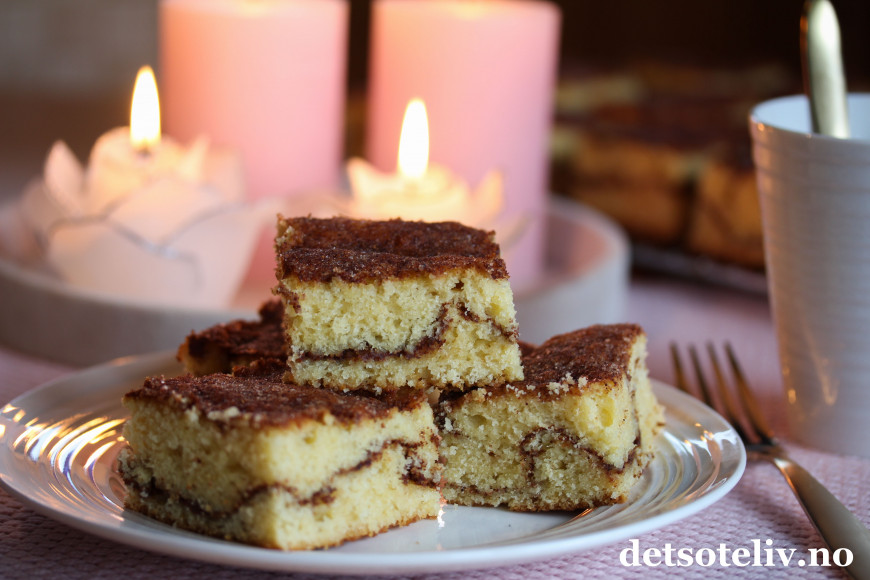 Resultatet blir en saftig kake som smaker som kanelboller - bare enda litt bedre, spør du meg...