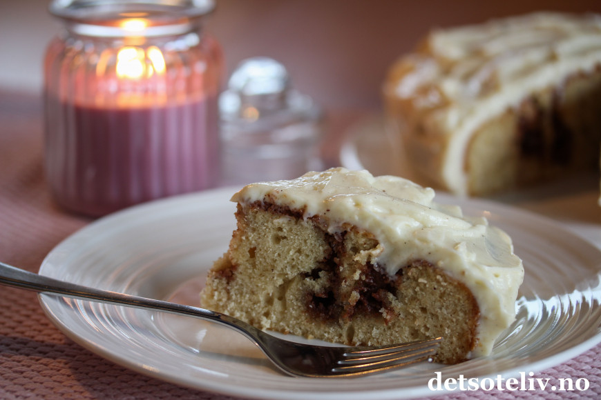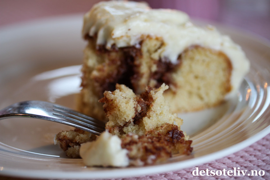 ♥ Se også oppskrift på Kanelbollekake i langpanne.