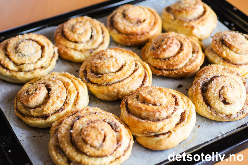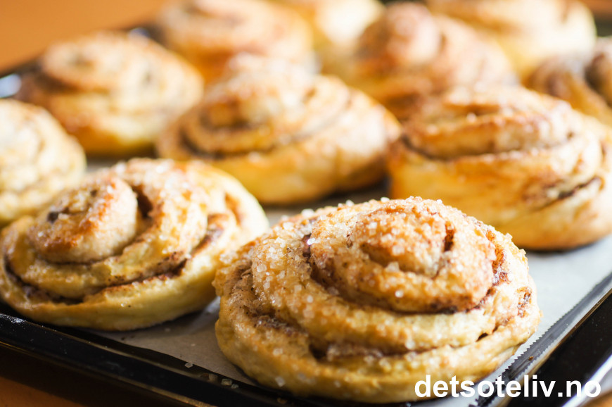 Og her er kanelbollene rett etter at de er tatt ut av ovnen: