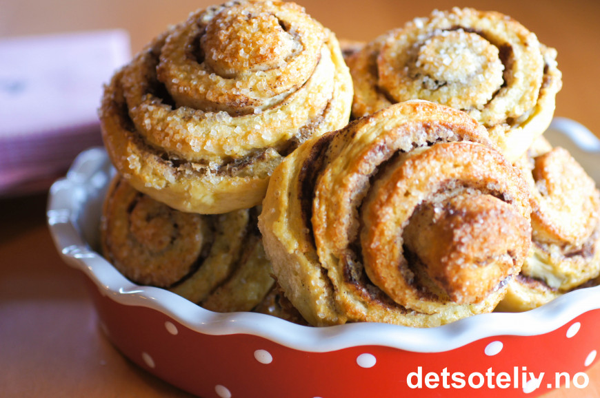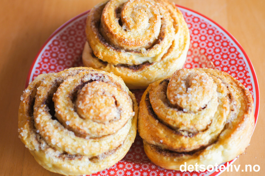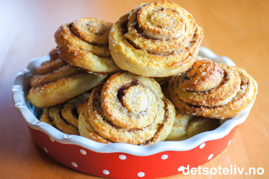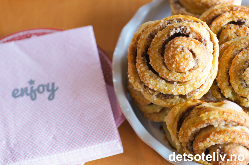Fin fin oppskrift :) Jeg hadde i litt kardemomme. Men det er jo en smakssak. Lekre, luftige og gode ble de ihvertfall.