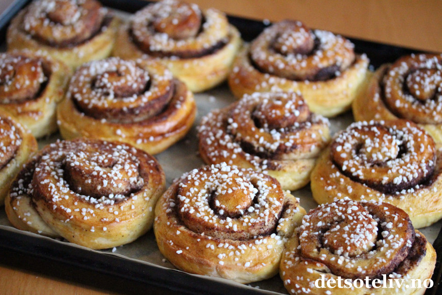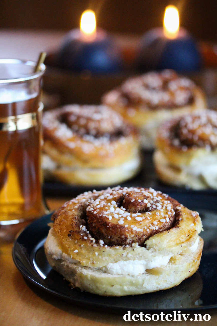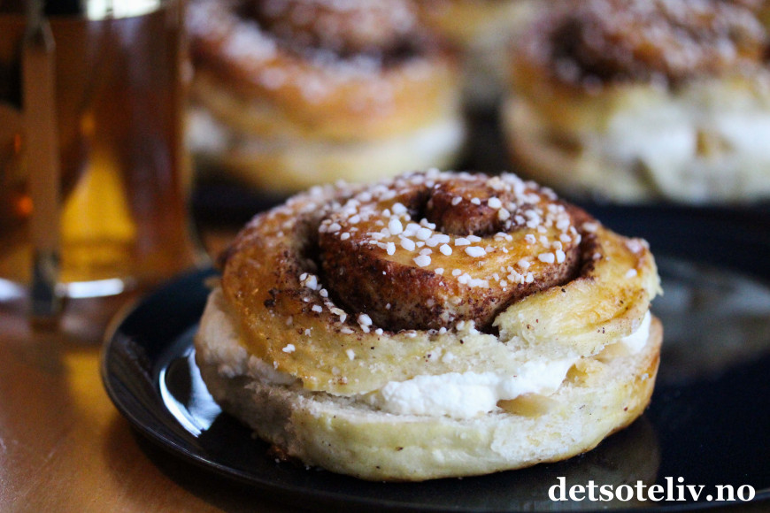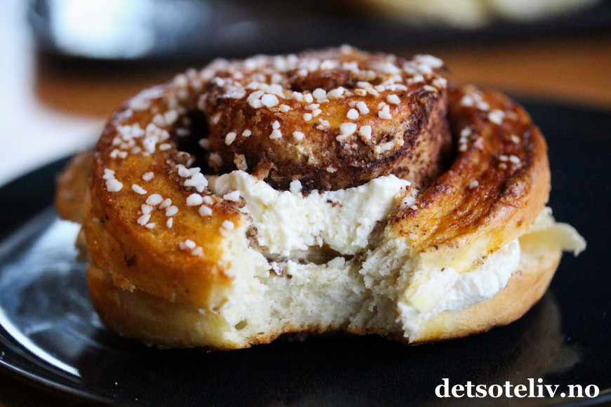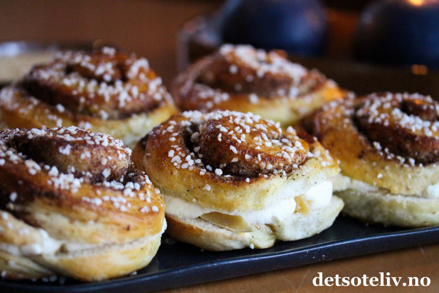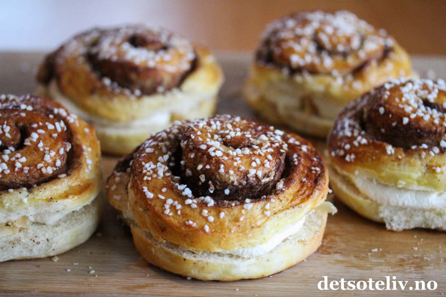 ♥ Se også Kanelboller med jordbær og krem og Kanelboller med vaniljekremfyll.