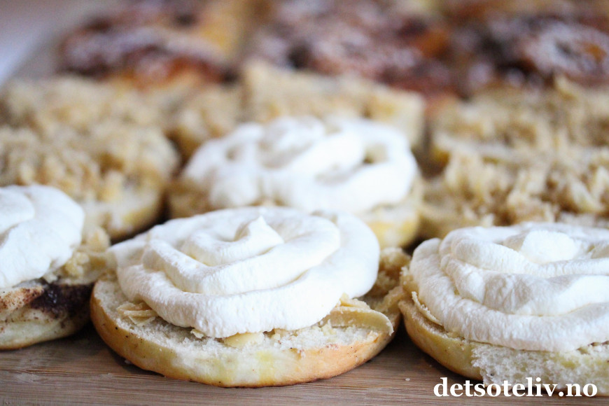 Dette er deilige Kanelboller som fylles med revet marsipan og luftig krem.