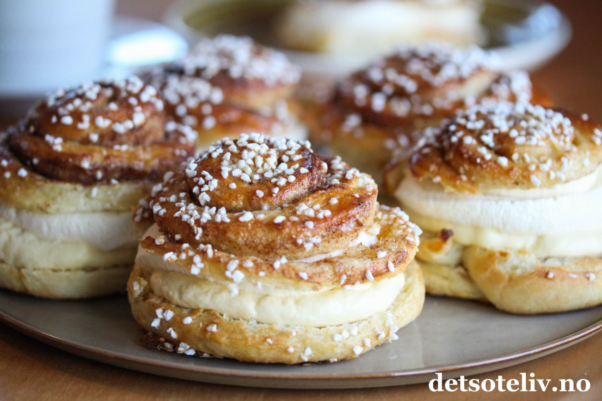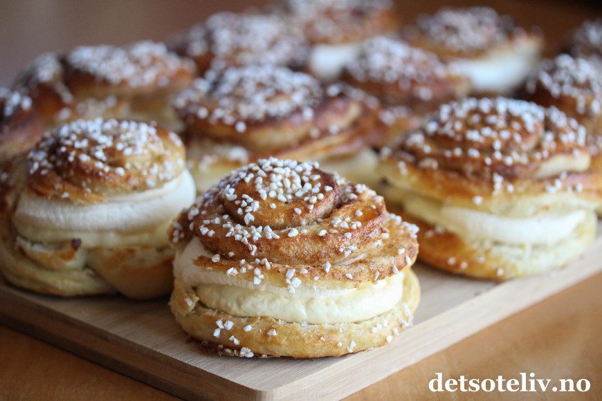 Før årets fastelavnsfeiring, lagde jeg flere varianter av kremfylte Kanelboller.