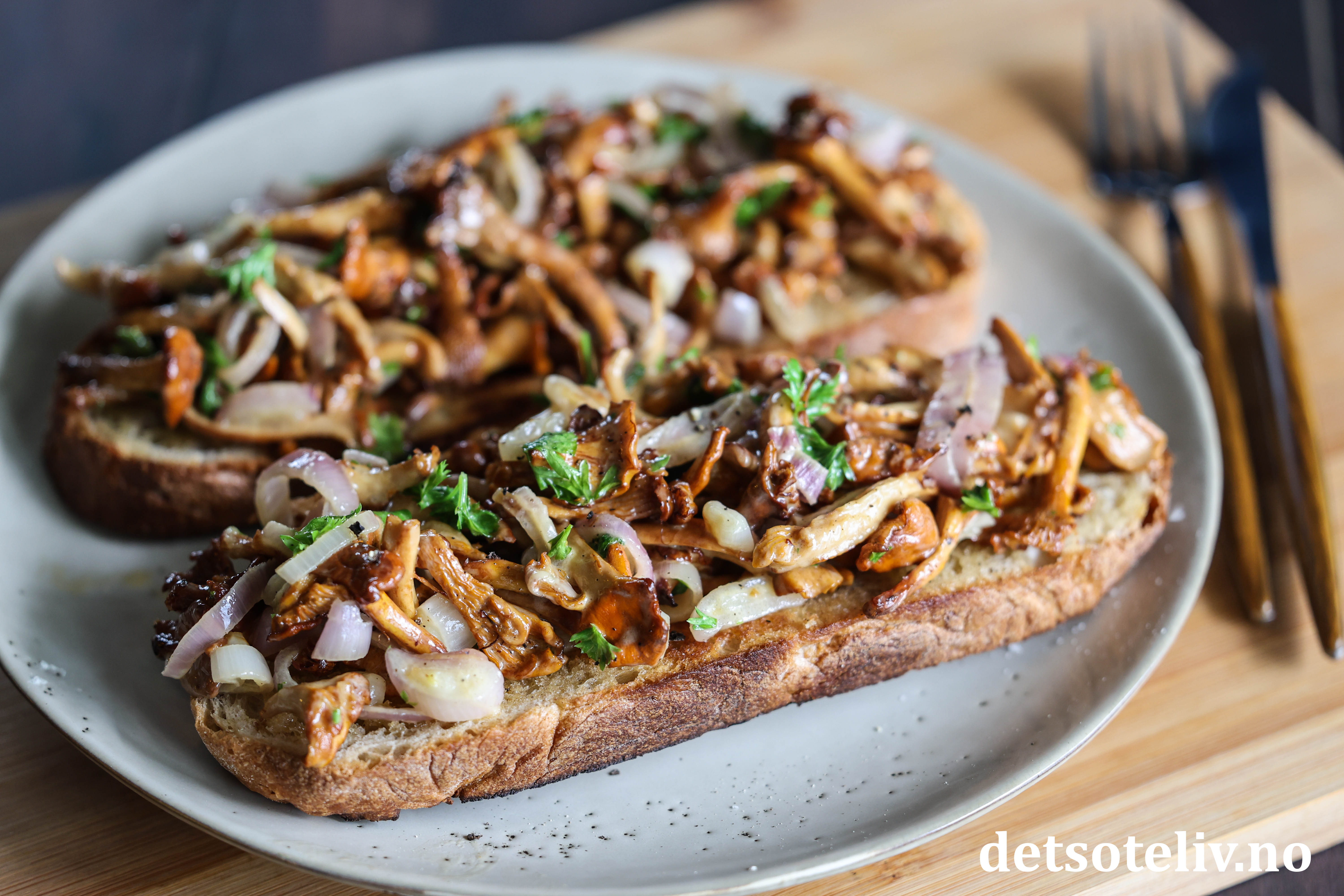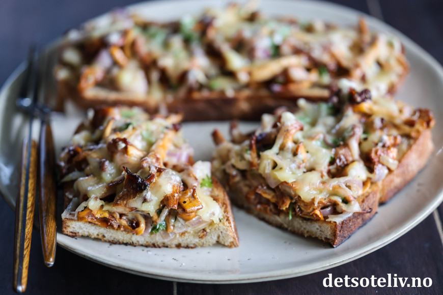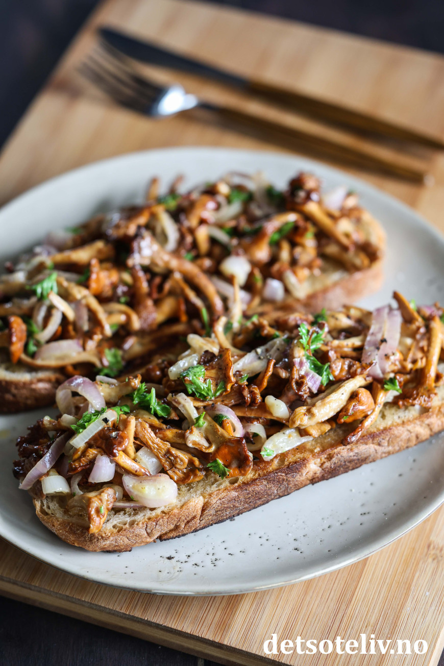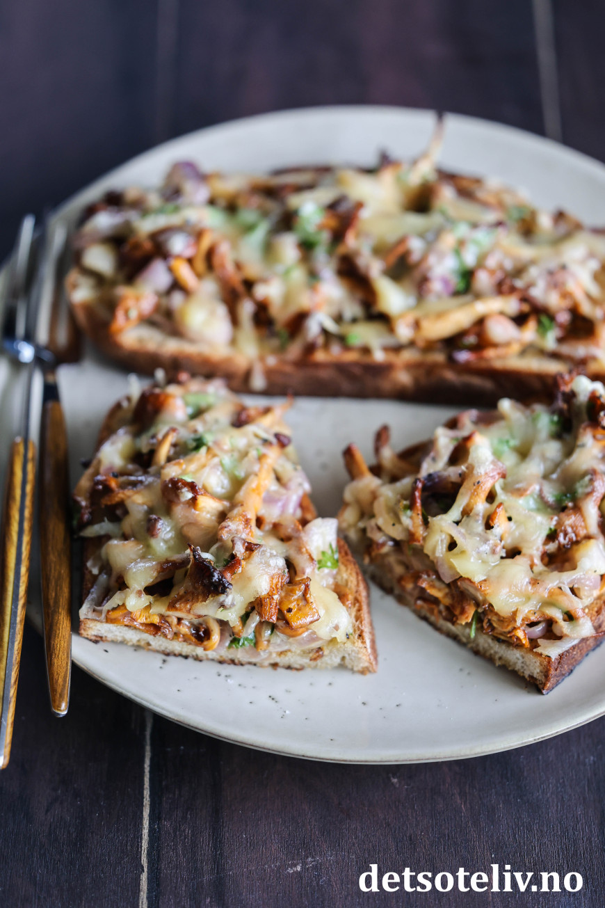 PS: Hvis du også er glad i ost, kan du toppe kantarelltoasten med revet ost og ha den noen minutter i ovnen.
