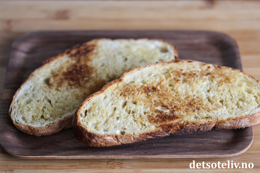 Smør store brødskiver med smør på begge sider. Stek dem i stekepanne til de blir gylne og sprø på begge sider.