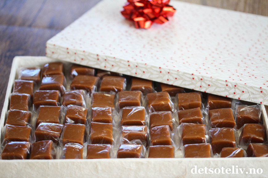 Karamellene gjør seg utmerket i en vakker gaveeske!
