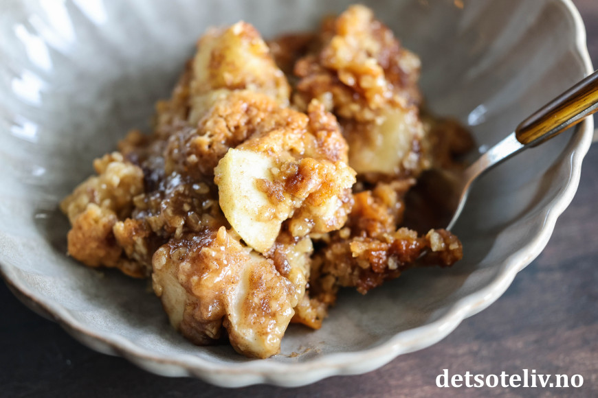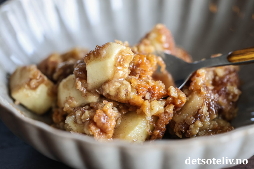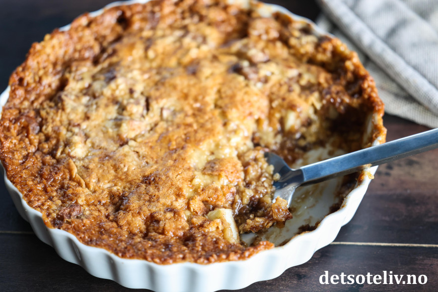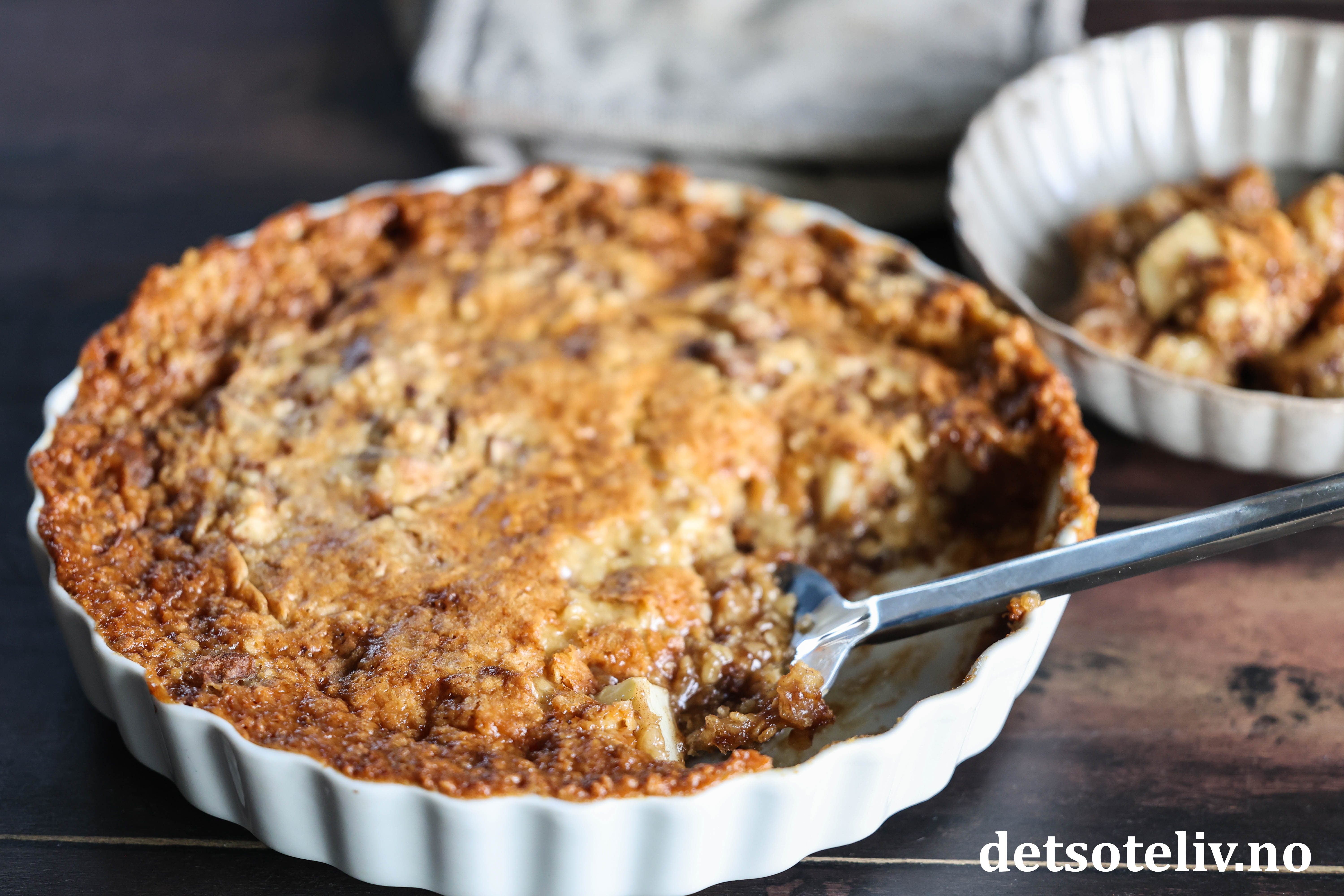 ♥ Denne eplepaien er digg som den er, men det er heller ikke dumt med vaniljeis eller vaniljesaus som tilbehør.