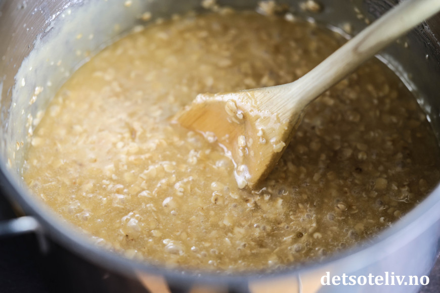 Smelt smøret til havredeigen i en kjele. Ta kjelen av platen.