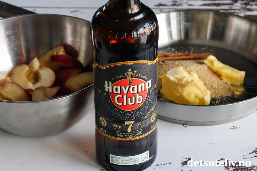 Tilsett brun rom og la småkoke videre i ca. 1 minutt.