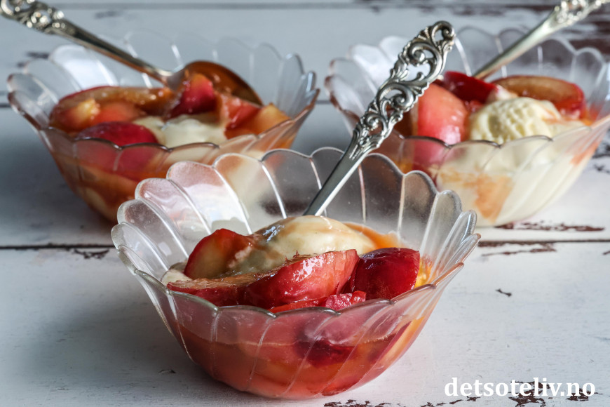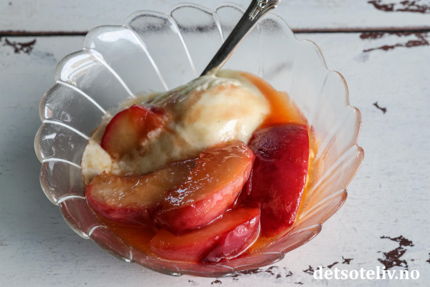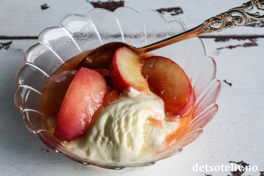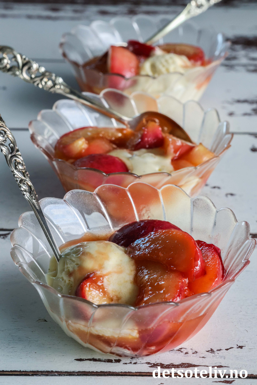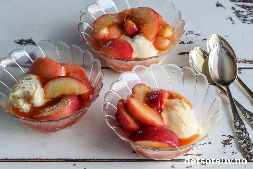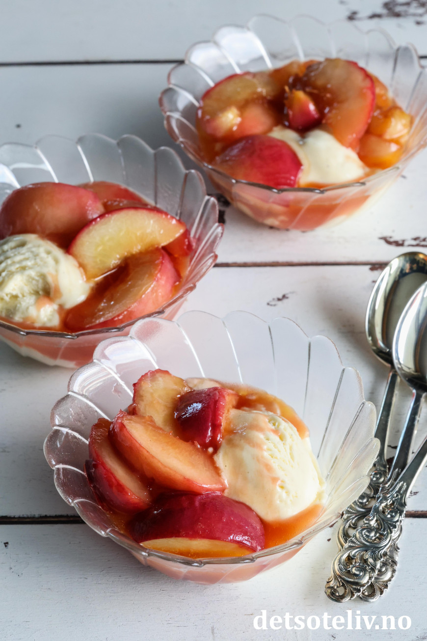 Vips har du karamelliserte fersken i en nydelig saus! 😍