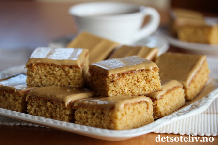 Kaken er myk i konsistens og har en deilig karamellsmak. Glasuren smaker av både karamell og kaffe. Tilsammen gjør dette kaken til en av de klare favorittene blant langpannekaker!