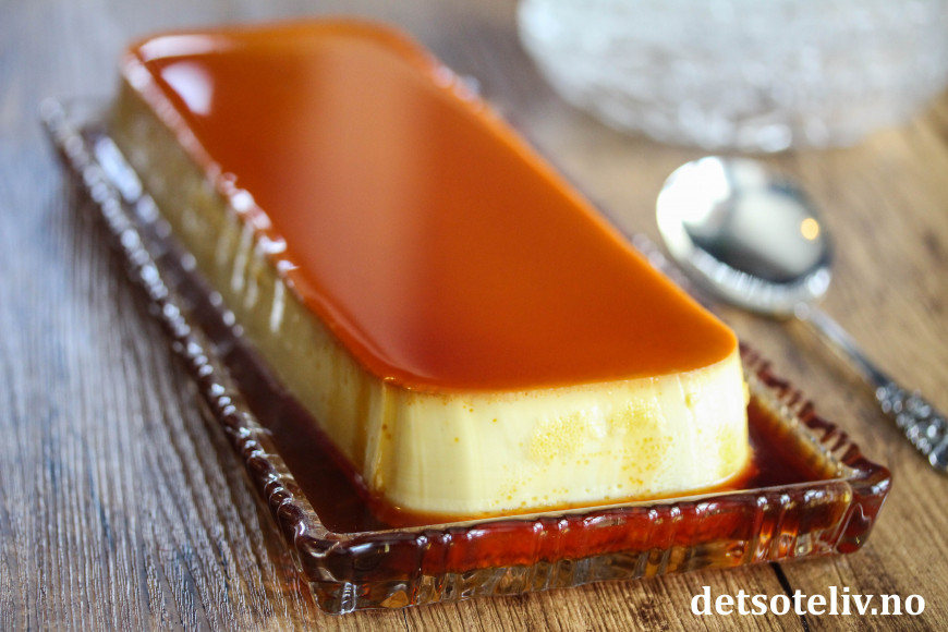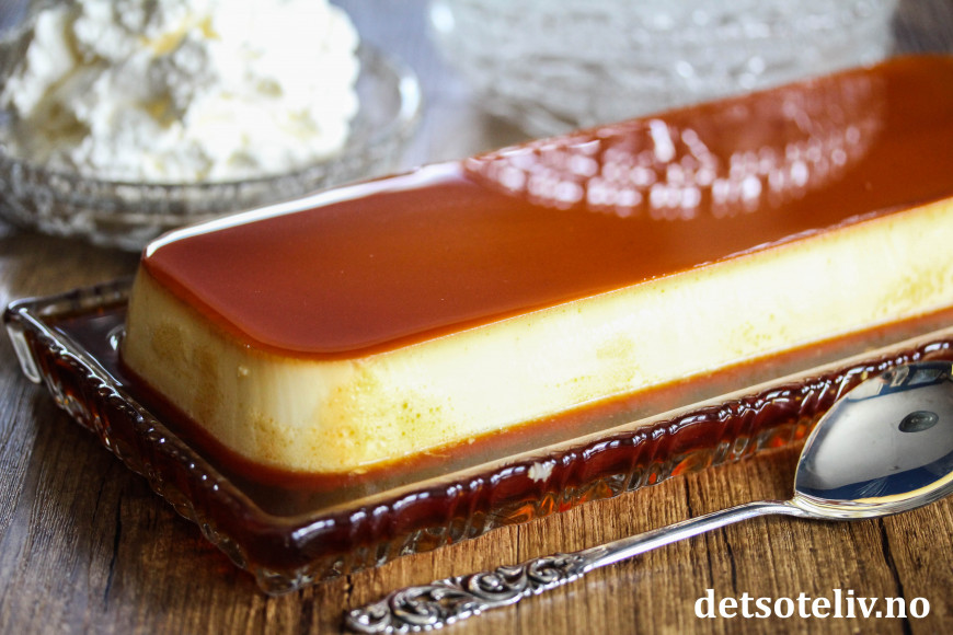 Jeg lagde karamellpudding til nyttårsaften med denne oppskriften, men den ble dessverre mislykket. Jeg mistenker at jeg stekte den litt for lenge, da jeg stekte den i nesten akkurat 2 timer. Men tror også at noe av årsaken er at den skal stekes på nederste rille i ovnen, mens denne oppskriften sier at den skal stekes midt i ovnen. Ble grøtete i konsistensen i nederste del (når man har flippa den), men serverte en 3 cm av toppen av puddingen likevel.