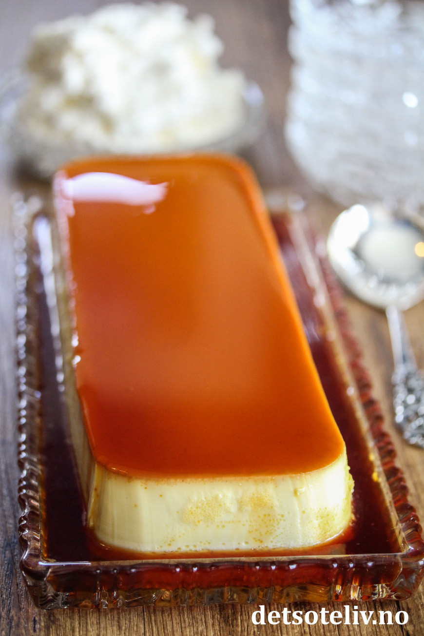 ♥ Karamellpudding må som du ser lages dagen før servering. Den kan oppbevares i kjøleskapet i flere dager.