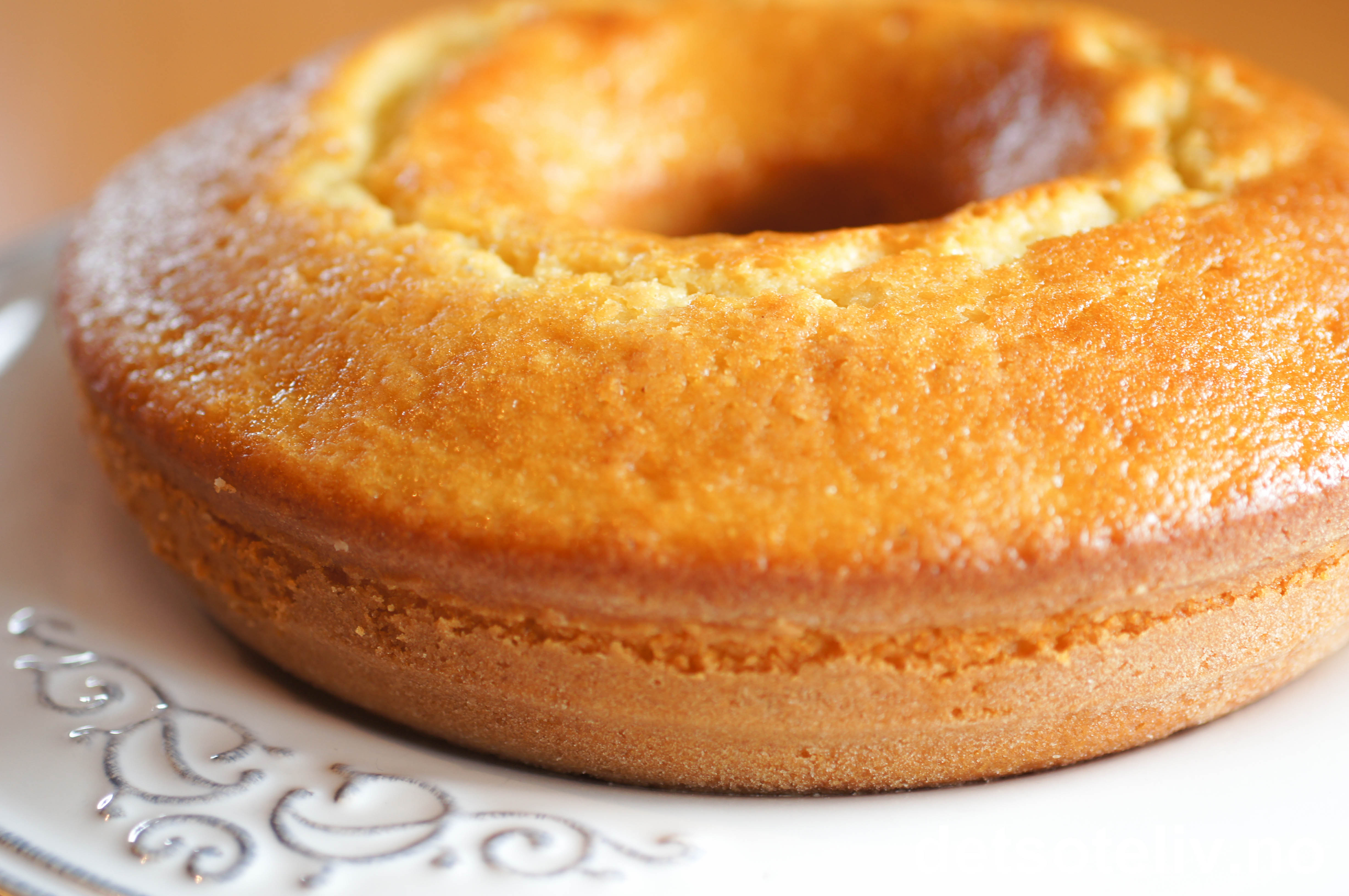 Stek kaken på rist nederst i ovnen ved 180°C i ca 45 minutter (sjekk med en kakenål at kaken er helt gjennomstekt). Dekk eventuelt over kaken med et stykke matpapir ved slutten av steketiden for å unngå at den blir for mørk på toppen. Ta kaken ut av ovnen og la den avkjøles litt i formen før den forsiktig tas ut av formen og avkjøles helt.