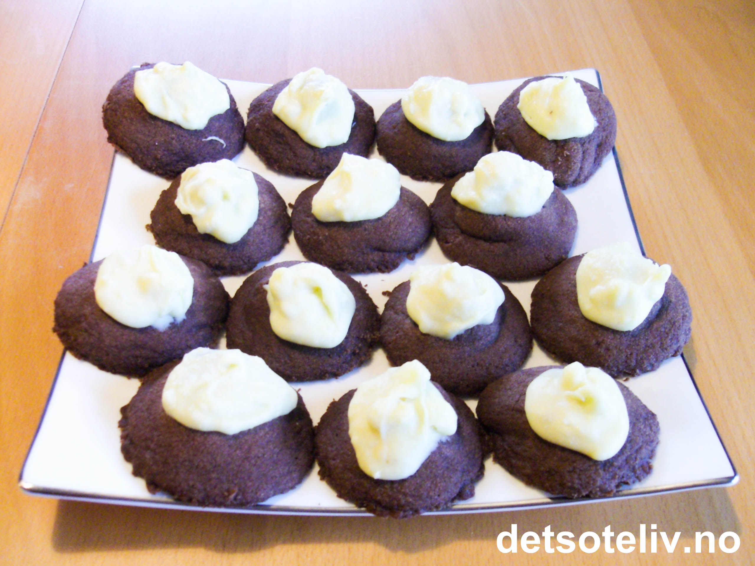 Synes du at kakene har flytt for mye ut og blitt for flate, kan du fortsatt lage en topp på kakene ved hjelp av en ekstra stor klatt med hvit sjokolade.