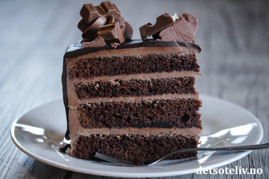 ♥ Kaken bør være kjøleskapskald (men ikke frossen), slik at melkesjokoladekremen utenpå kaken er helt fast.