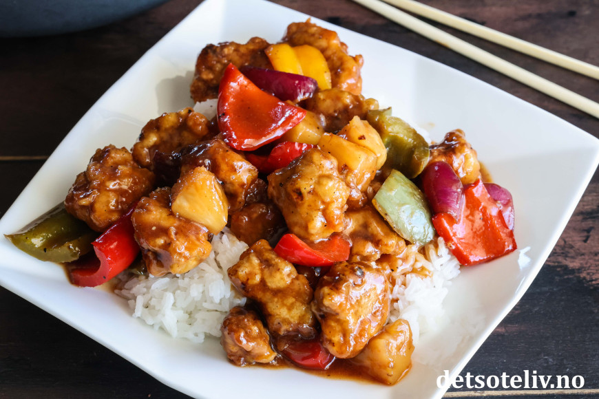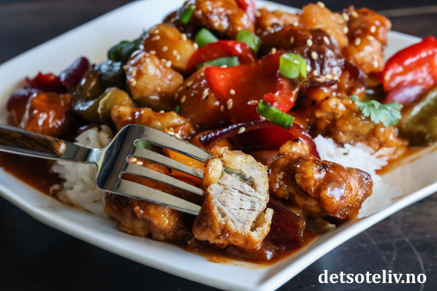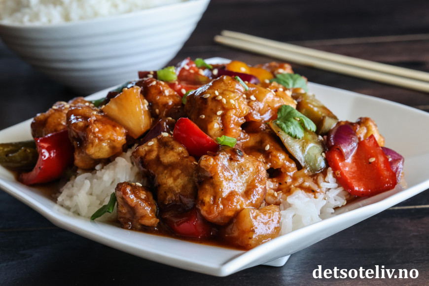 Kinesisk svin i sursøt saus hører til de mest berømte rettene fra det kinesiske kjøkken (Sweet and Sour Pork eller Gū lǎo ròu på kinesisk).