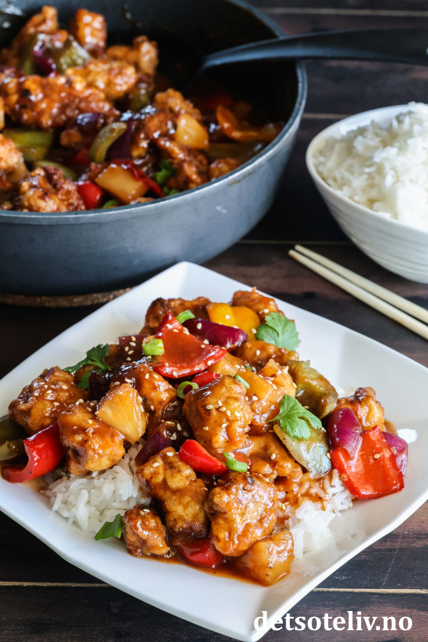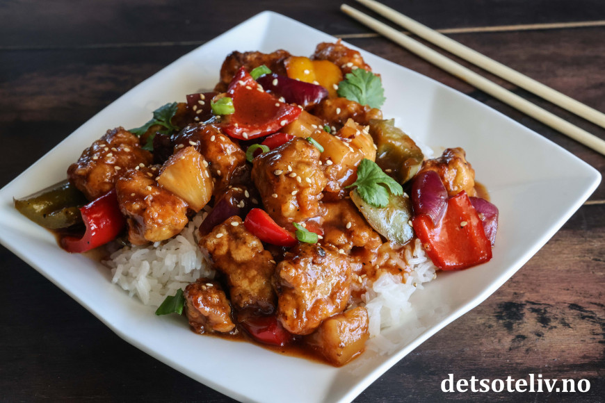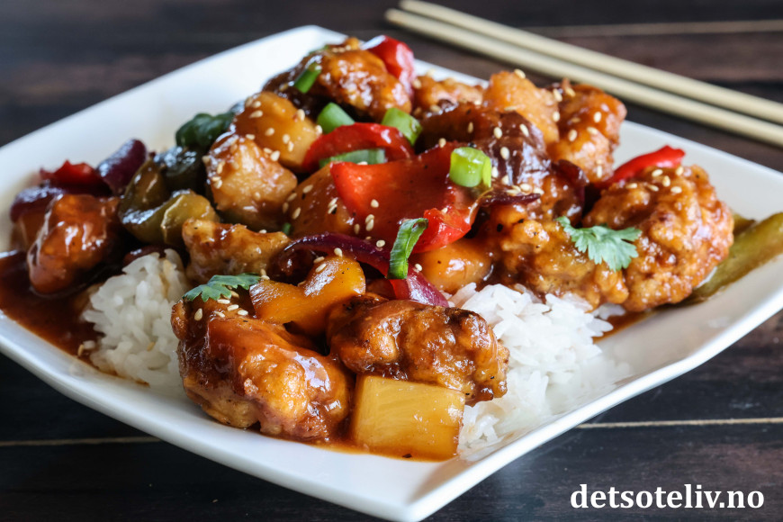 Se også Kinesisk kylling i sursøt saus, som er basert på samme oppskrift.
