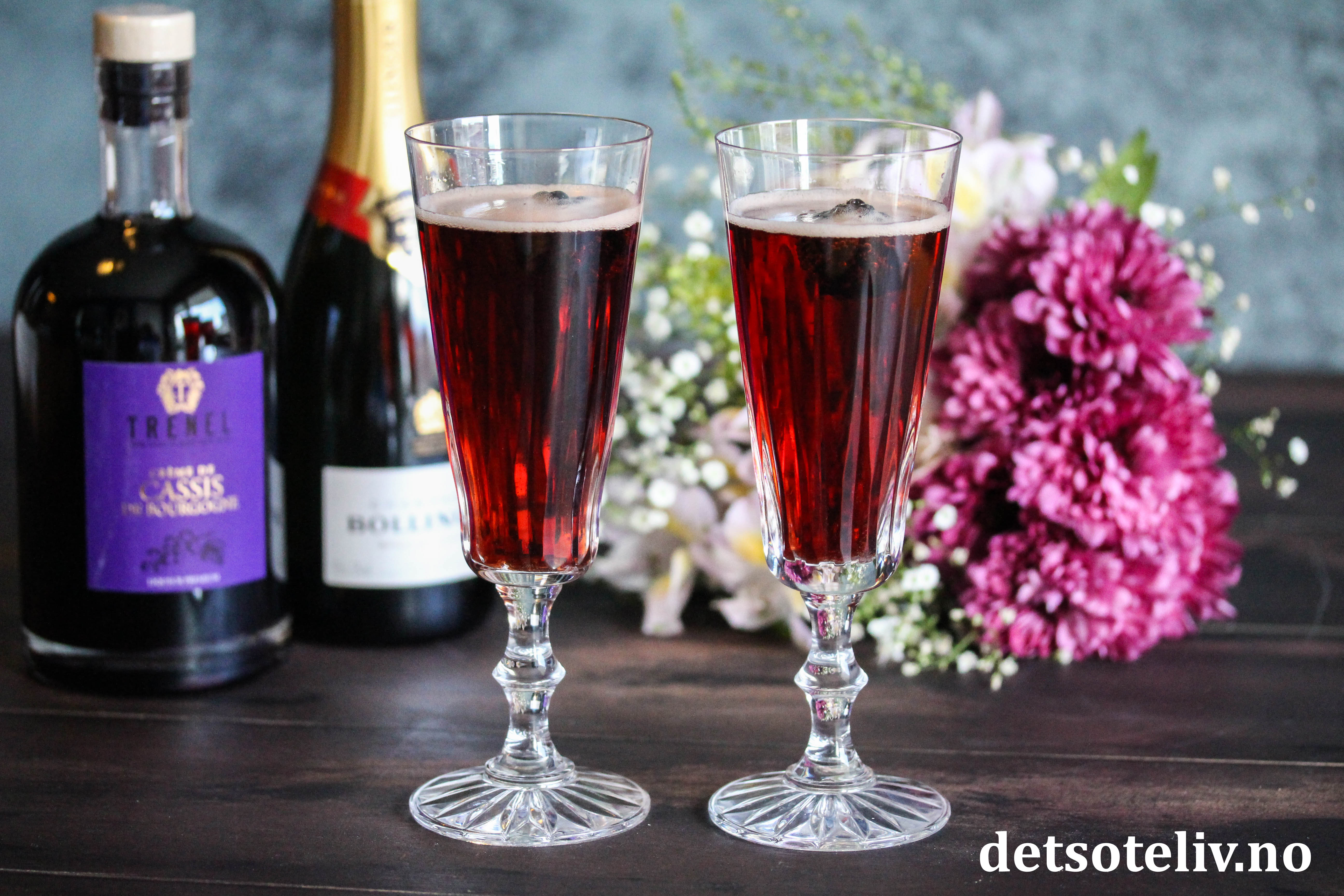 Det er lurt å helle solbærlikøren i glasset først, for da blander den seg fint med champagnen uten at du trenger å røre.