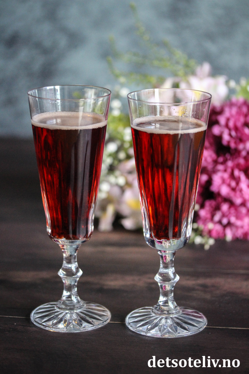 ♥ Faux Kir royale: Lag en alkoholfri variant ("Falsk Kir royale") ved å bytte ut solbærlikør med solbærsirup og champagne med alkoholfrie bobler.