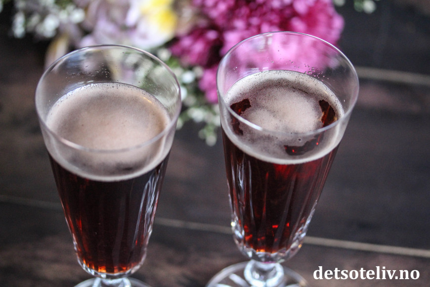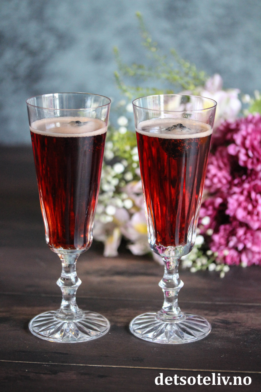 ♥ Det er ikke nødvendig å måle opp eksakte mengder solbærlikør og champagne. Bare hell litt solbærlikør i glasset først og fyll opp med champagne.