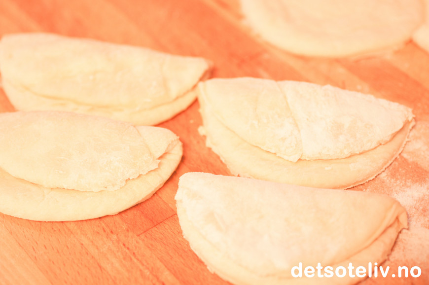 ♥ Det er viktig at du klemmer deigen godt sammen når du bretter over, ellers vil bretten åpne seg i løpet av stekingen. Resultatet blir Kissrolls som smaker like godt, men som mister noe av fasongen. Med mindre du med vilje vil lage åpne Kissrolls da...