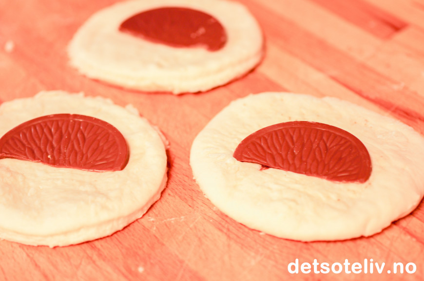 ♥ Appelsinsjokolade egner seg godt som fyll fordi en "appelsinbåt" passer perfekt å legge på leiven før du bretter den sammen.