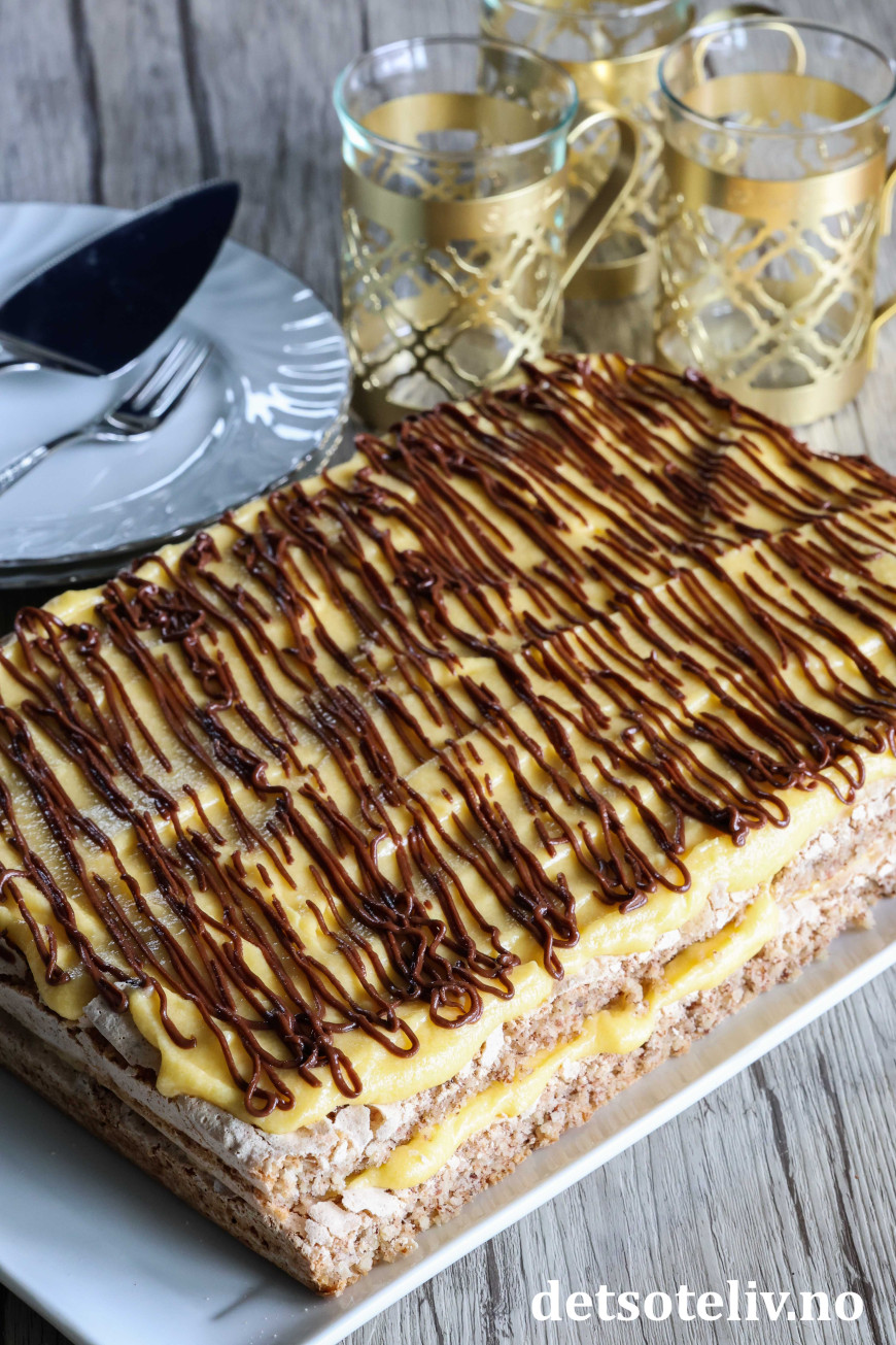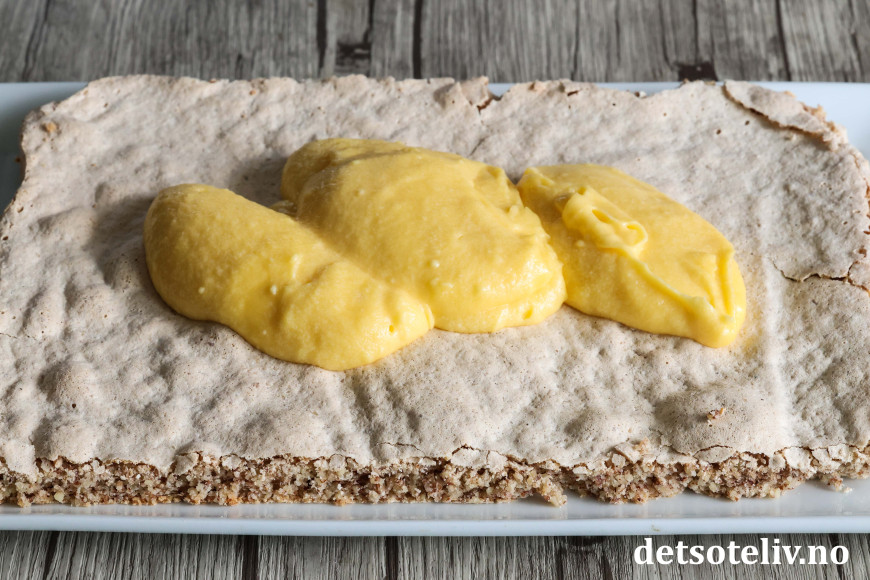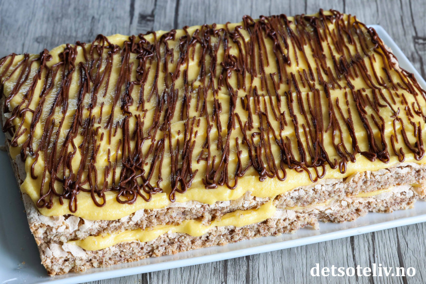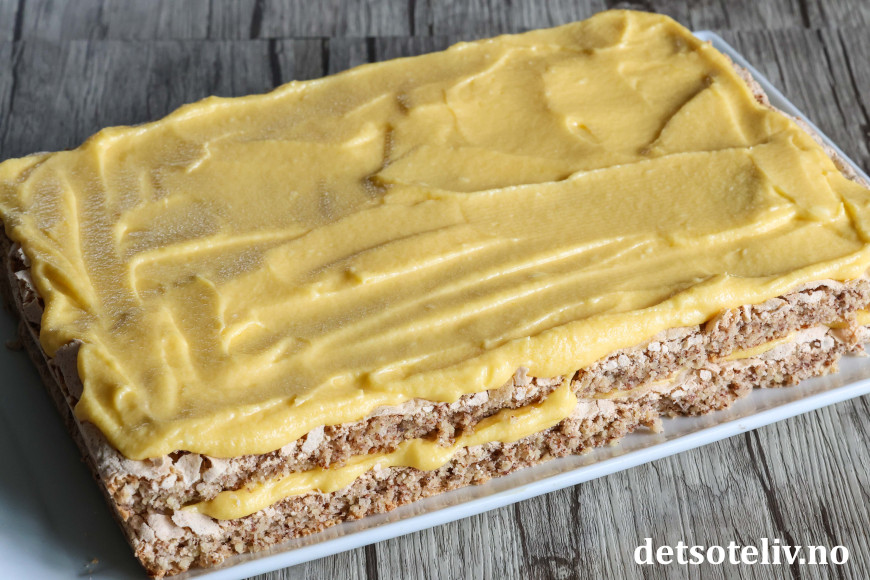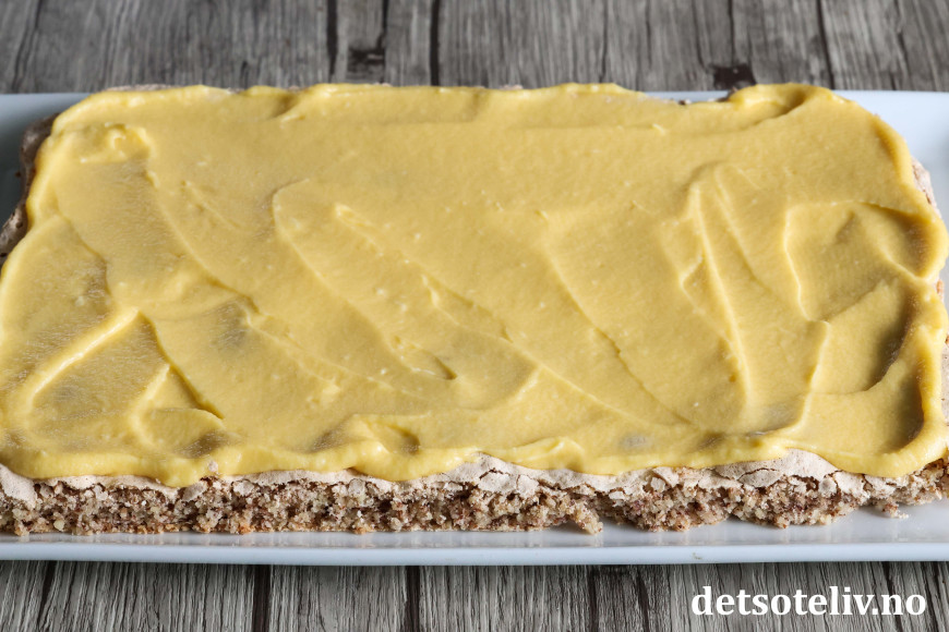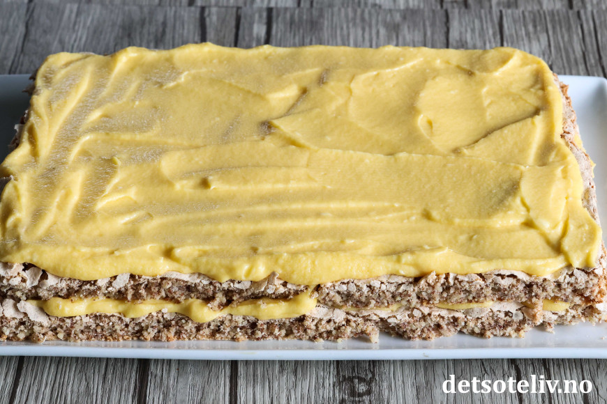 ♥ Den gule kremen vil tykne ytterligere når kaken står i kjøleskapet.