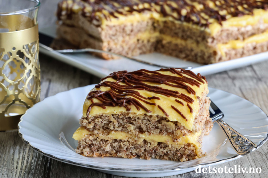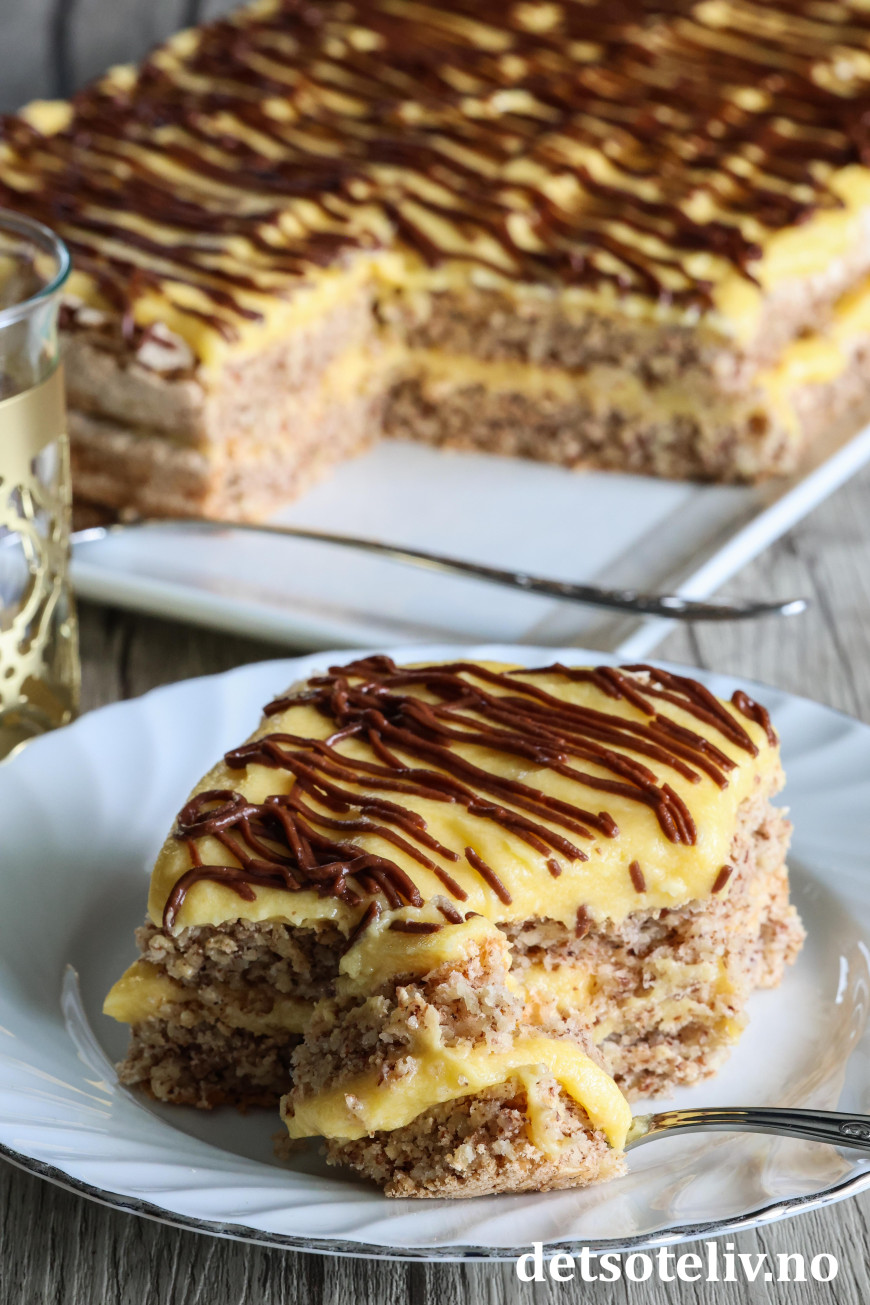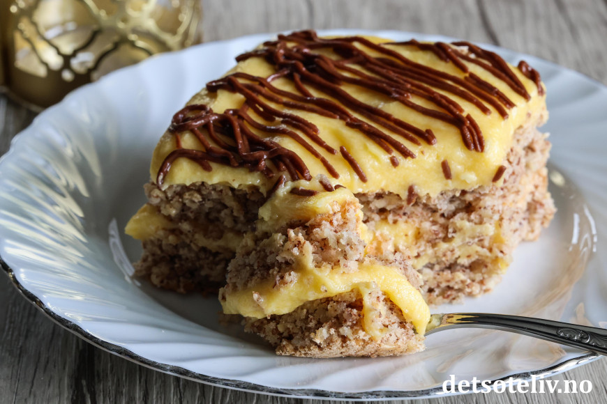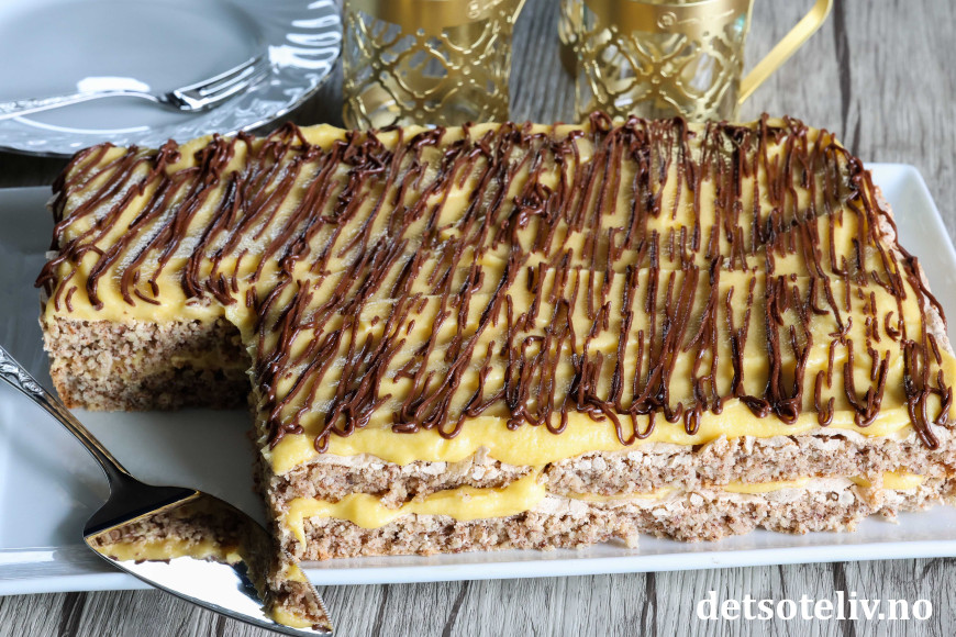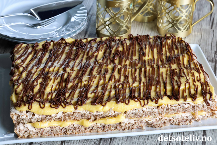 ♥ Den gule kremen vil tykne ytterligere når kaken står i kjøleskapet.