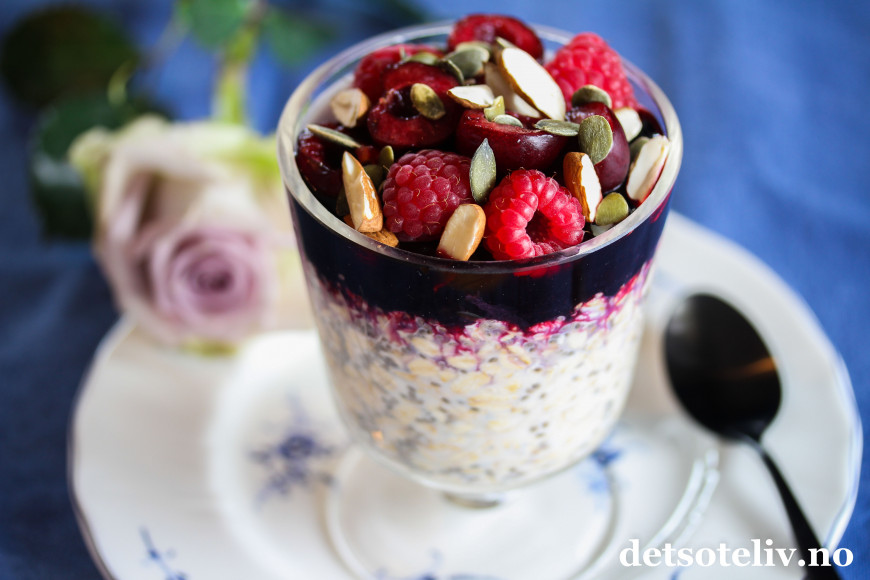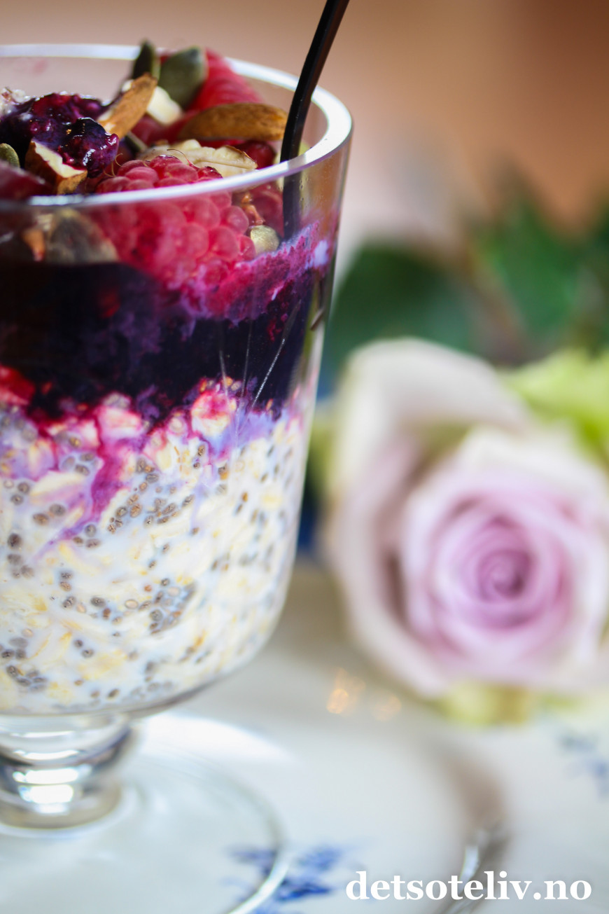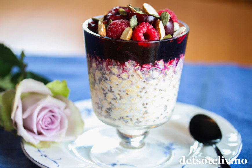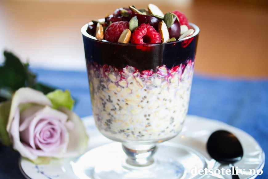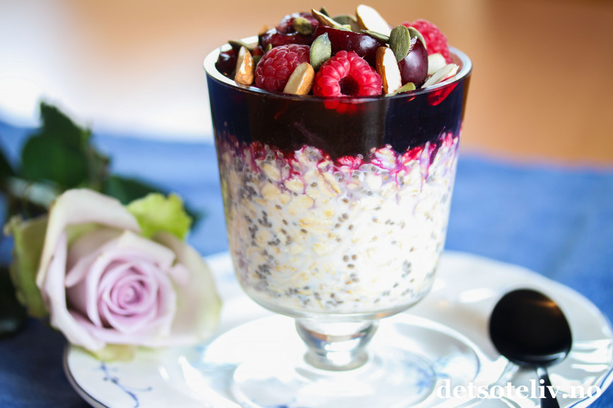 Du finner fra før flere varianter av Kjøleskapsgrøt her på bloggen, som kjennetegnes av havregryn som ligger i bløt over natten. Det samme gjelder Chiapudding, som har blitt mer og mer populært i det siste.