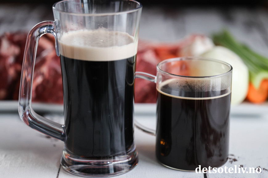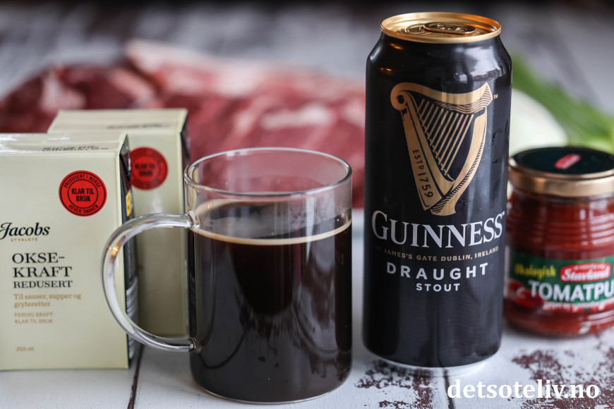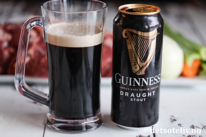 Ellers er denne gryten spesiell ved at den inneholder Guinness, som er det mørke, kraftige ølet som Irland er så kjent for. Ikke alle liker å drikke Guinness, men i en gryte gjør dette ølet seg veldig godt. I tillegg til Guinness inneholder sausen kjøttkraft og sterk, svart kaffe!