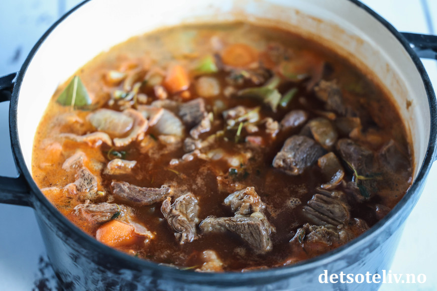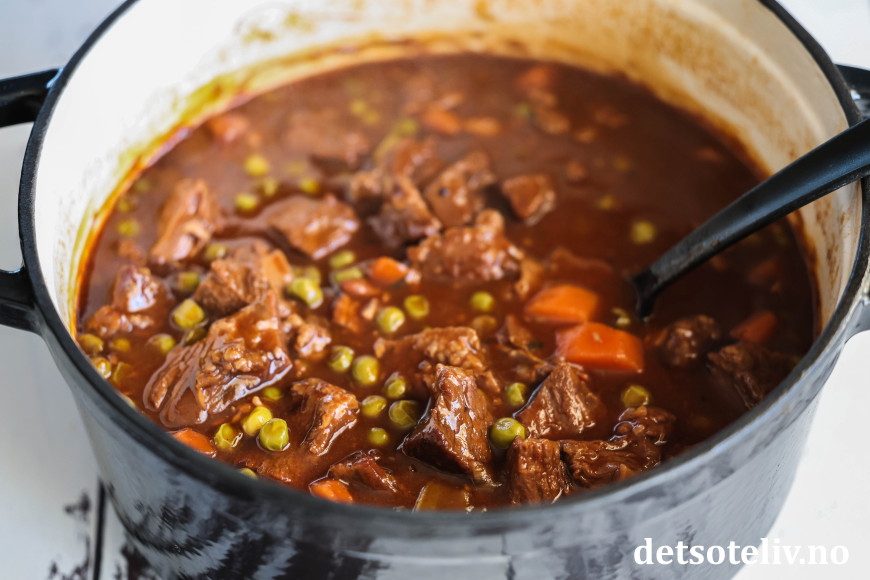 Dette er en kjøttgryte med dyp og kompleks og usedvanlig god smak!