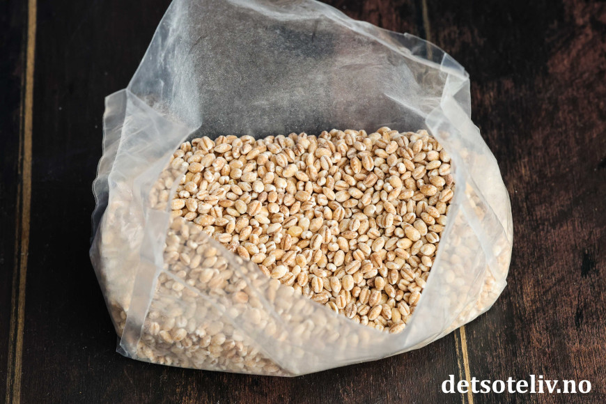 Start kvelden i forveien med å legge byggryn i bløt (dobbel mengde vann som gryn). Dekk til og sett i kjøleskapet.