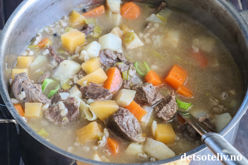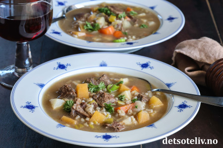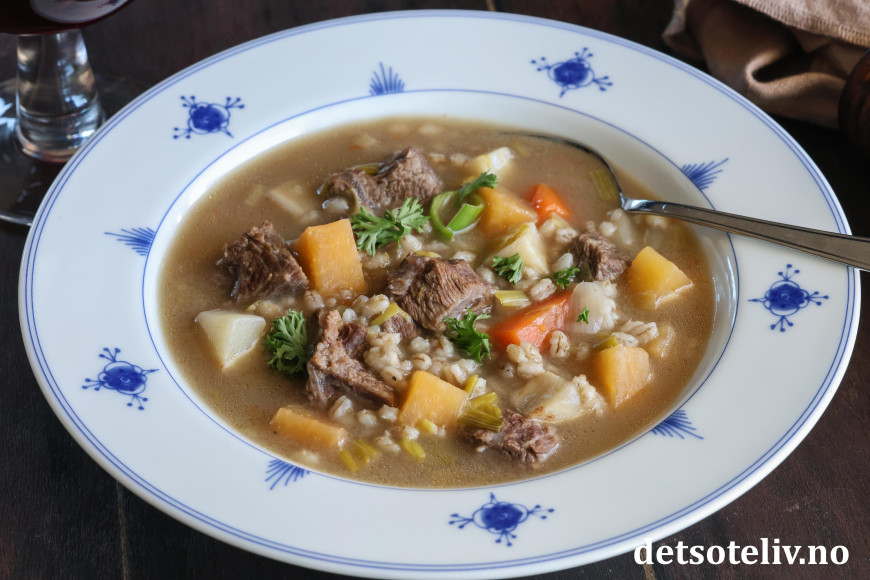 God, næringsrik og mettende Kjøttsuppe med byggryn er norsk tradisjonsmat!