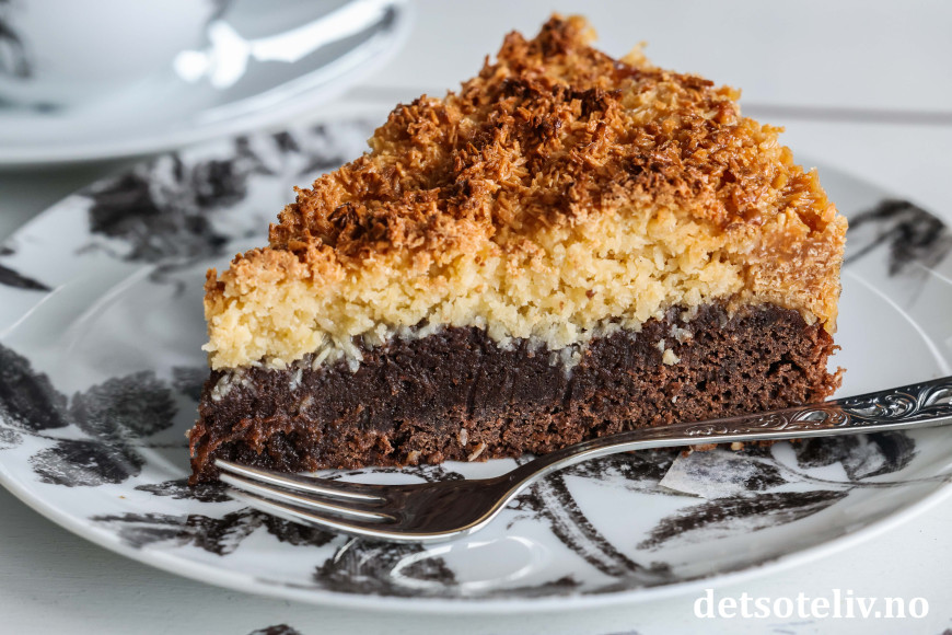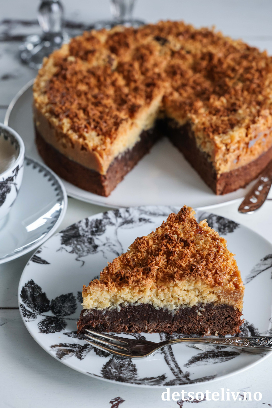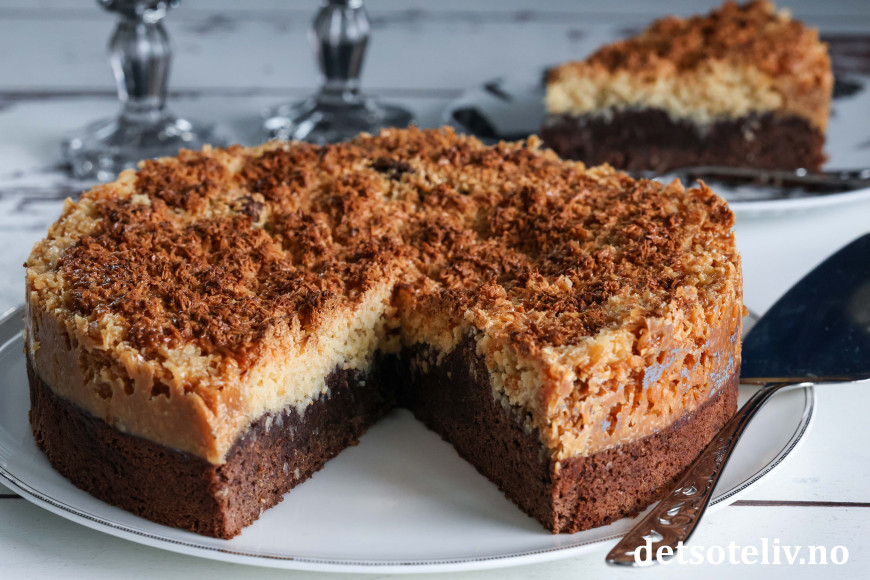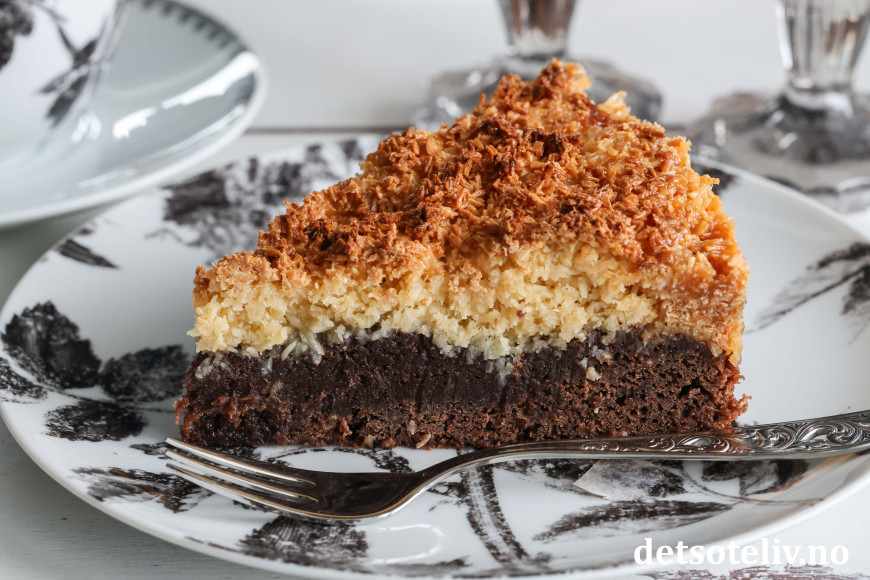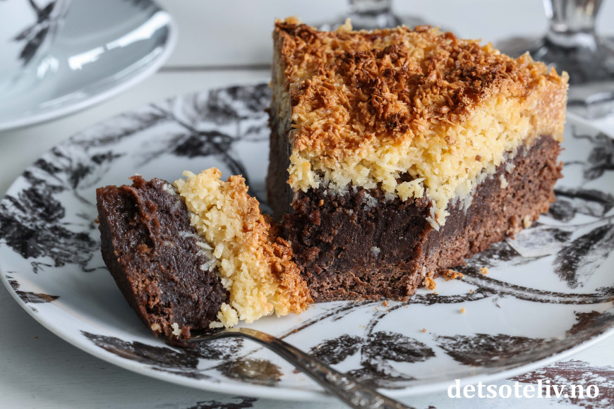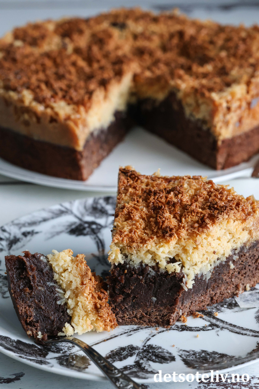 Denne svenske klassikeren består av bløt sjokoladekake som toppes med søt og litt seig, karamellisert kokosglasur.